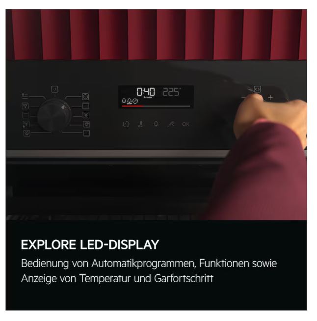 - Kindersicherung: Neugierige, experimentierfreudige Kinder sind an sich etwas Schönes. Aber bitte nicht am Backofen. Deshalb verhindert die Kindersicherung, dass das Gerät versehentlich in Betrieb genommen werden kann.