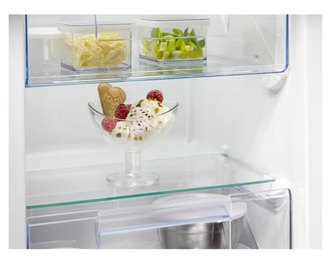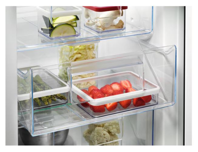 - Flexi-Space, die flexible Gefrierraumnutzung: Die Schubladen und Glasablagen sind herausnehmbar, so daß auch großvolumige Lebensmittel wie z.B. Truthahn und Torten problemlos eingefroren werden können.