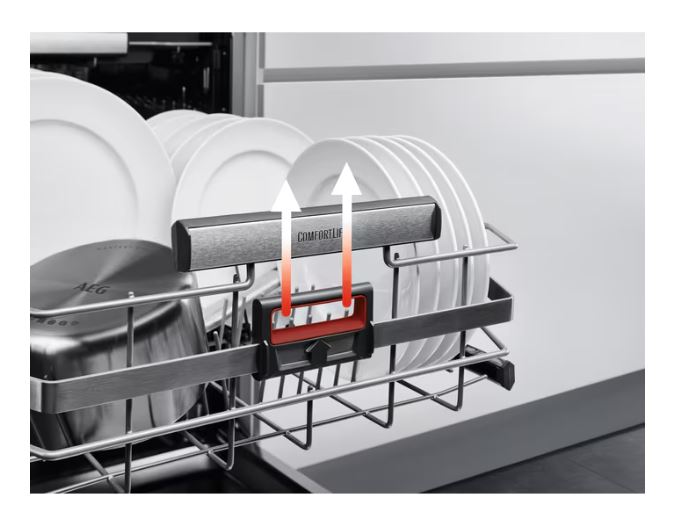 - Unterkorb: 4 foldable tines Comfort Lift®, Griff mit Edelstahl