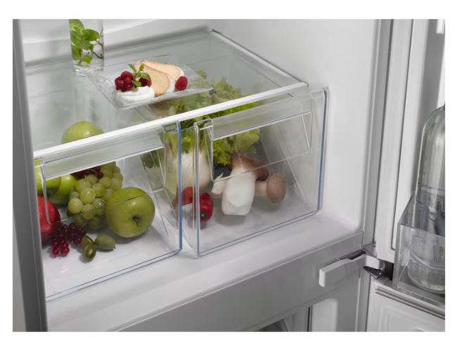 - Flexi-Space, die flexible Gefrierraumnutzung: Die Schubladen und Glasablagen sind herausnehmbar, so daß auch großvolumige Lebensmittel wie z.B. Truthahn und Torten problemlos eingefroren werden können.