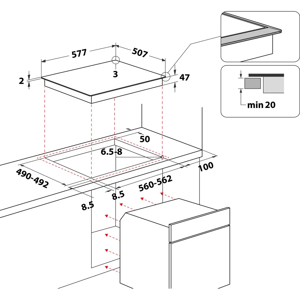 - Ausschnittmaße: B x T = 560 x 490 mm
