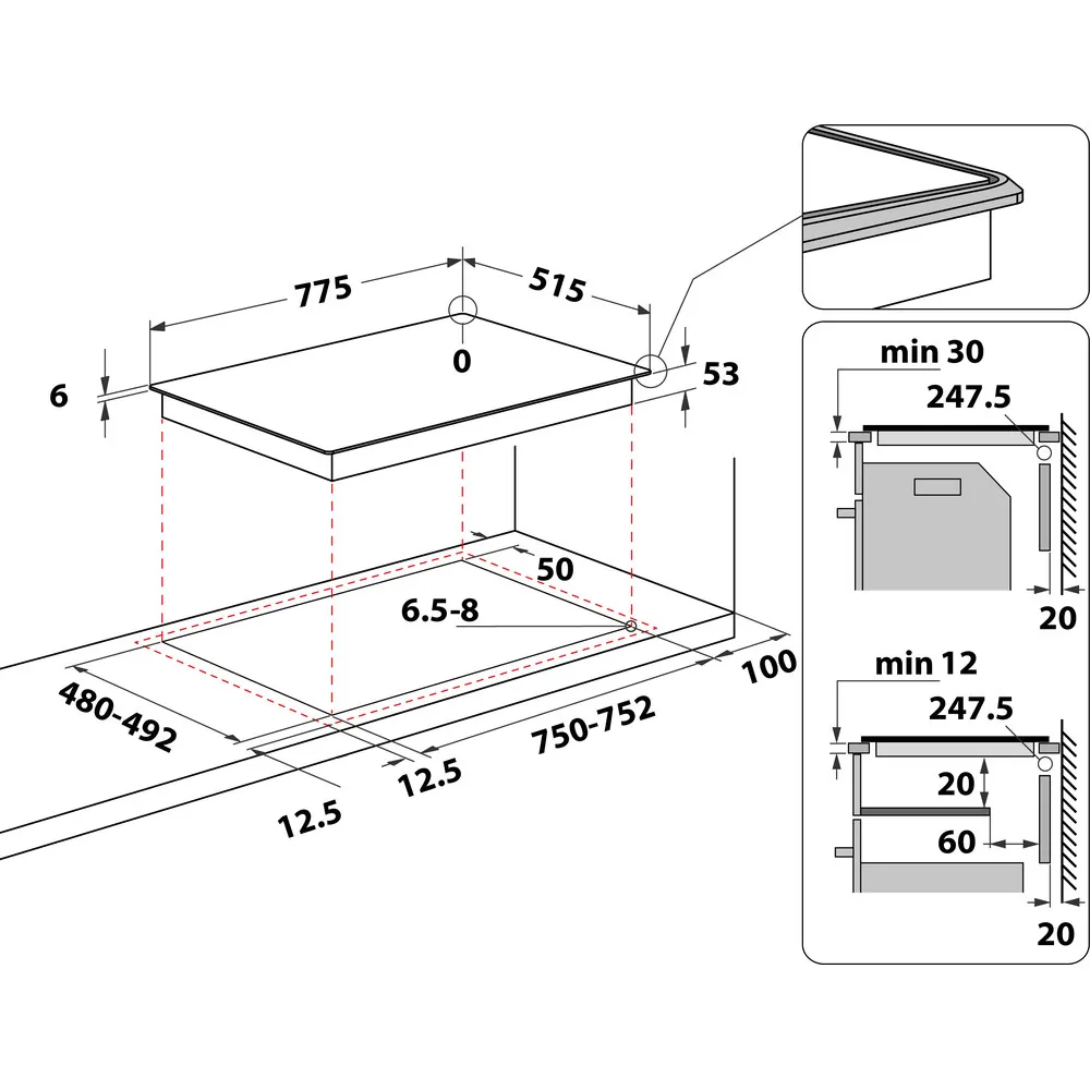 - Ausschnittmaße: B x T = 750 x 480 mm