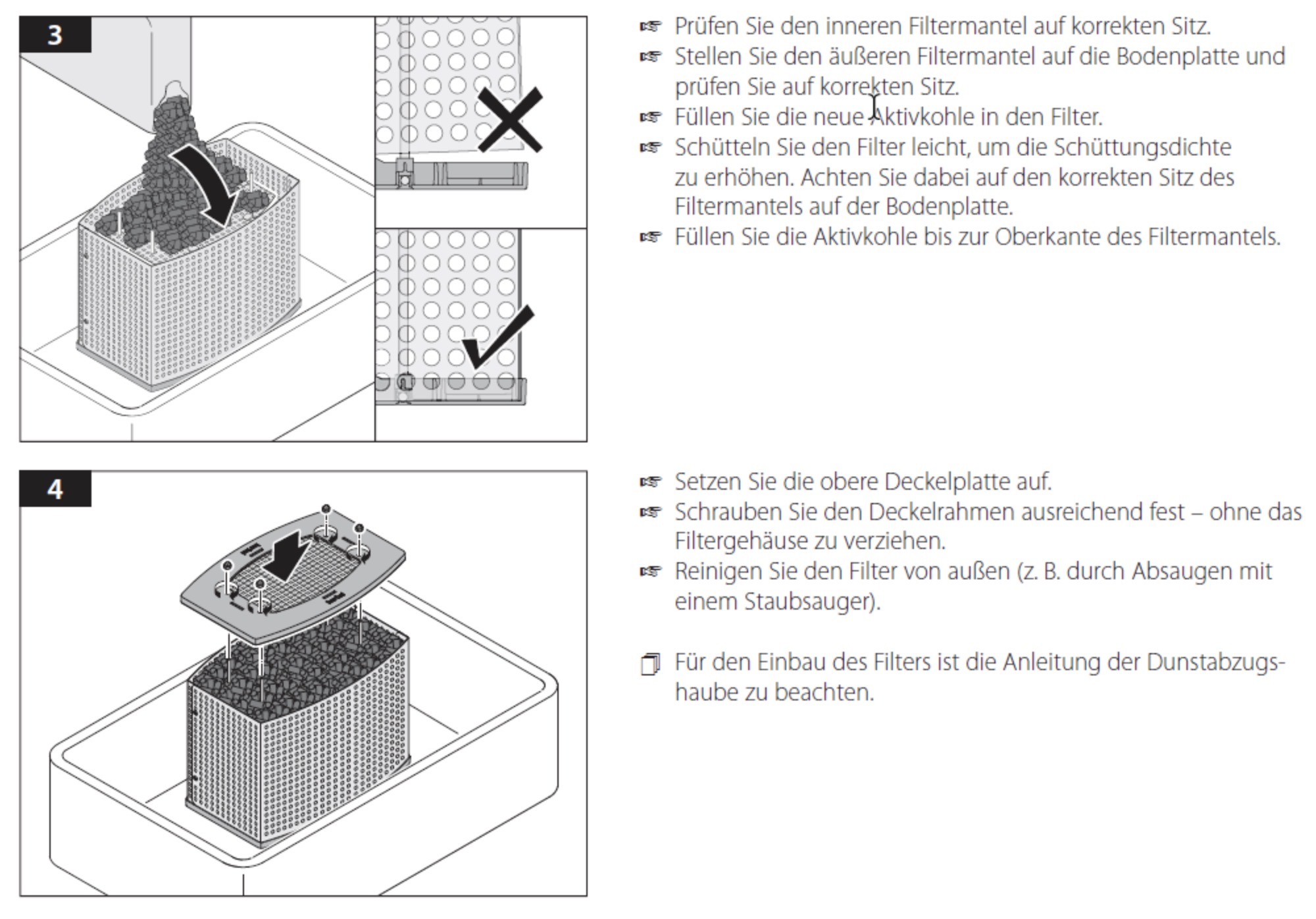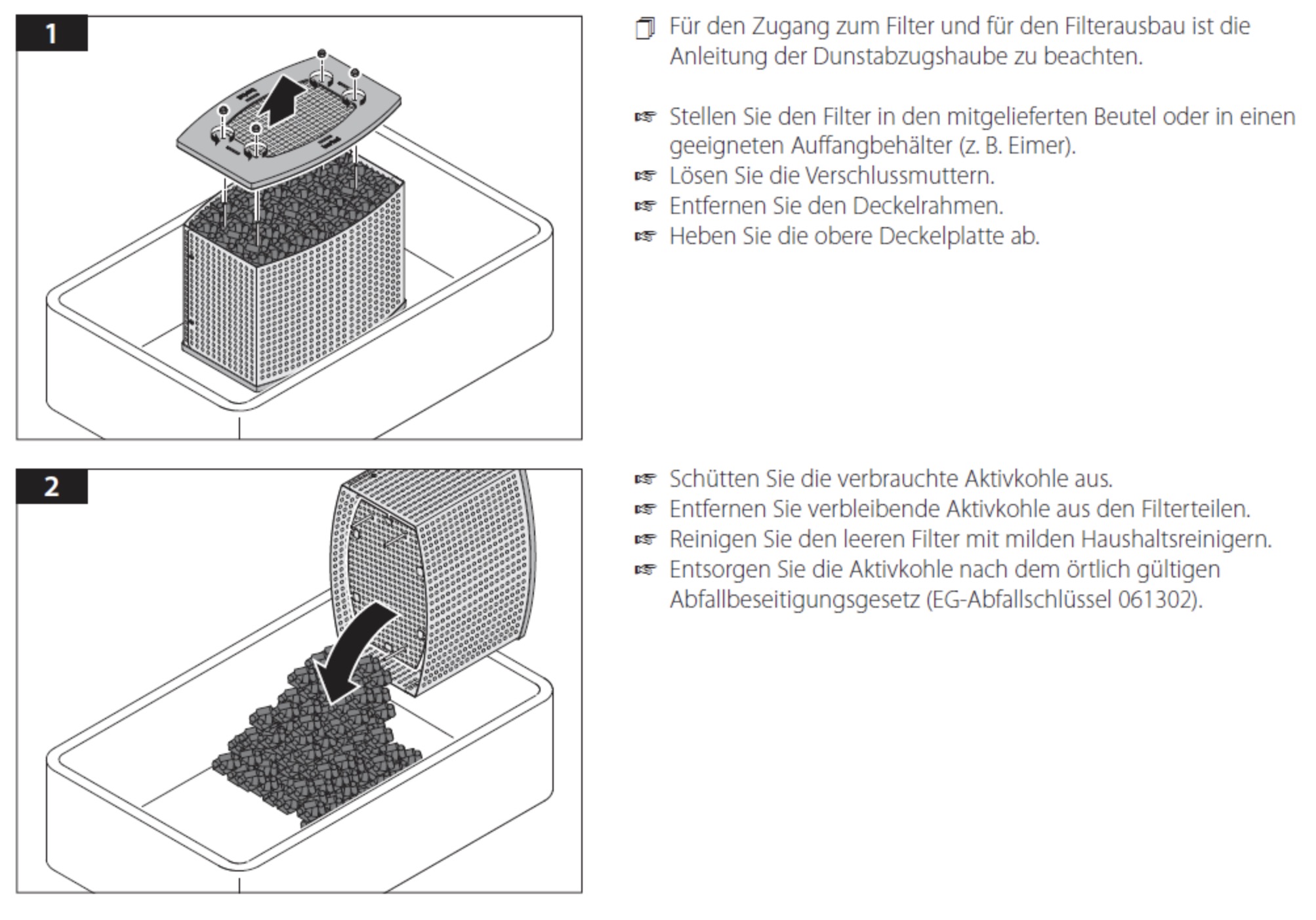 - Kunststoffbeutel zum Auffangen der alten Aktivkohle