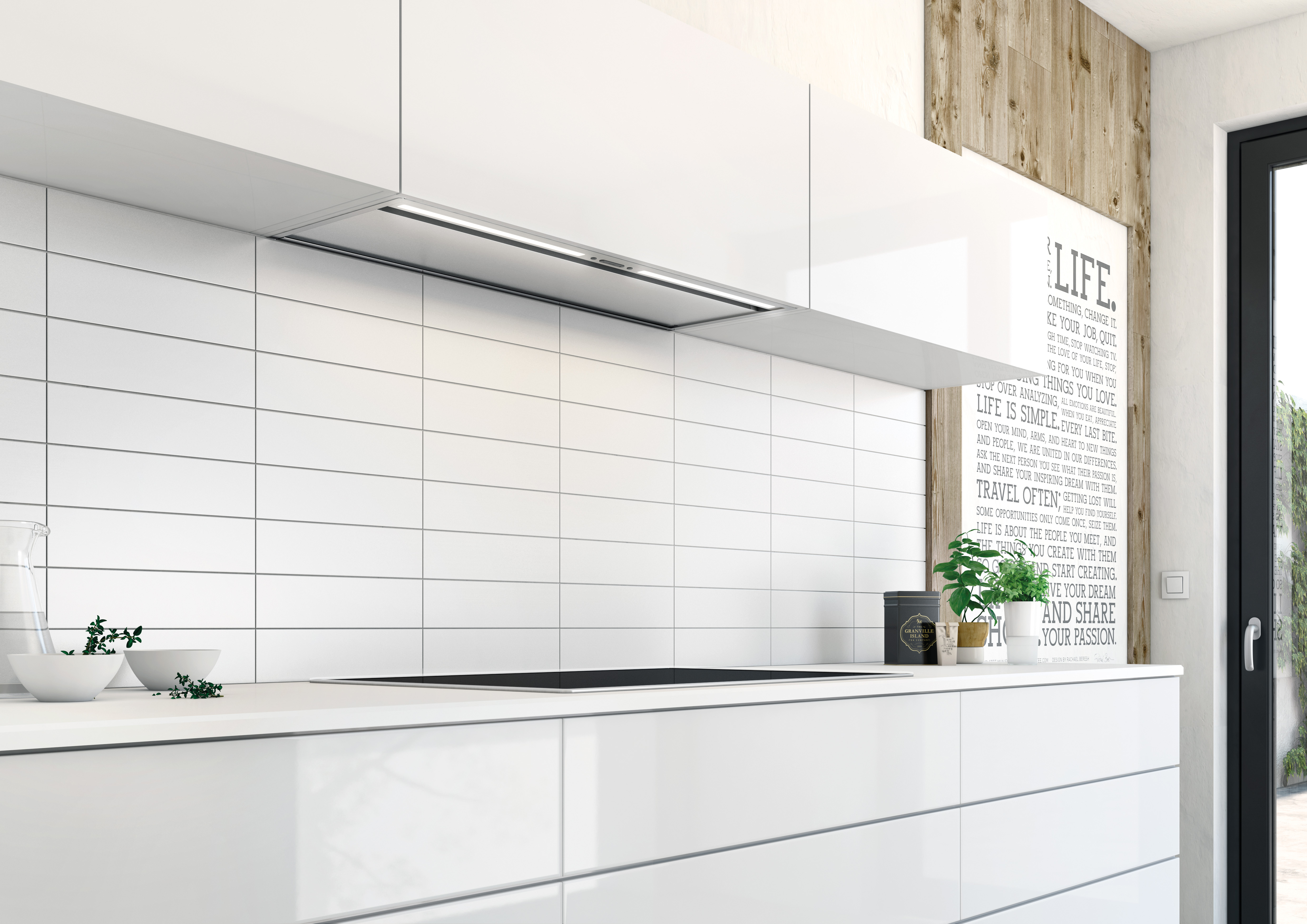 - Obwohl die Firstline Unseen komplett im bodenlosen Oberschrank verschwindet, lässt sie sich bequem und intuitiv über das verdeckte Tastenfeld bedienen. Über drei Schalter werden die Lüfterstufen sowie die blendfreie LED-Lichtleiste gesteuert. Für ein angenehmes Wohlfühllicht beim Kochen lässt sich die Lichttemperatur stufenlos verändern.