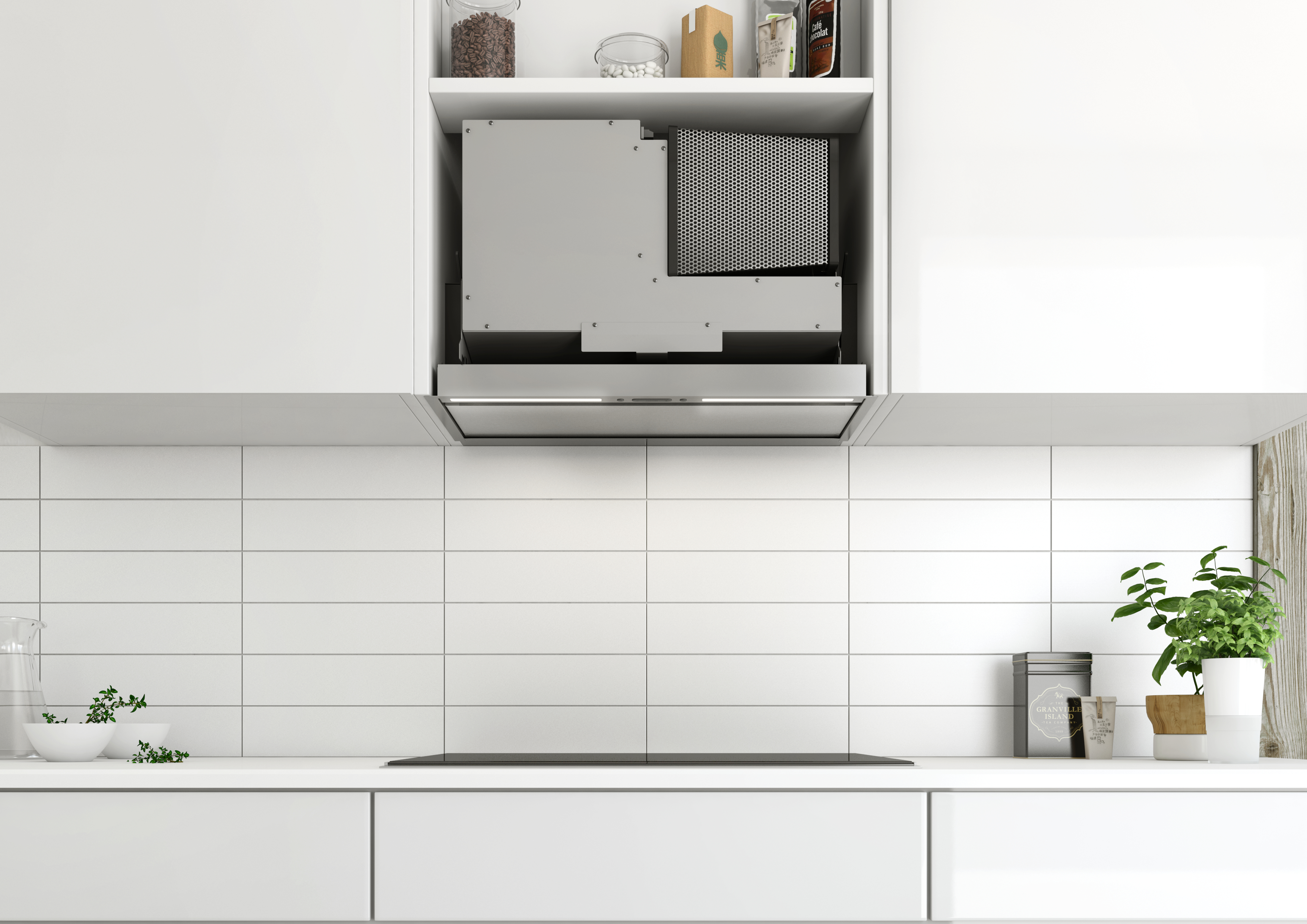 - Obwohl die Firstline Unseen komplett im bodenlosen Oberschrank verschwindet, lässt sie sich bequem und intuitiv über das verdeckte Tastenfeld bedienen. Über drei Schalter werden die Lüfterstufen sowie die blendfreie LED-Lichtleiste gesteuert. Für ein angenehmes Wohlfühllicht beim Kochen lässt sich die Lichttemperatur stufenlos verändern.