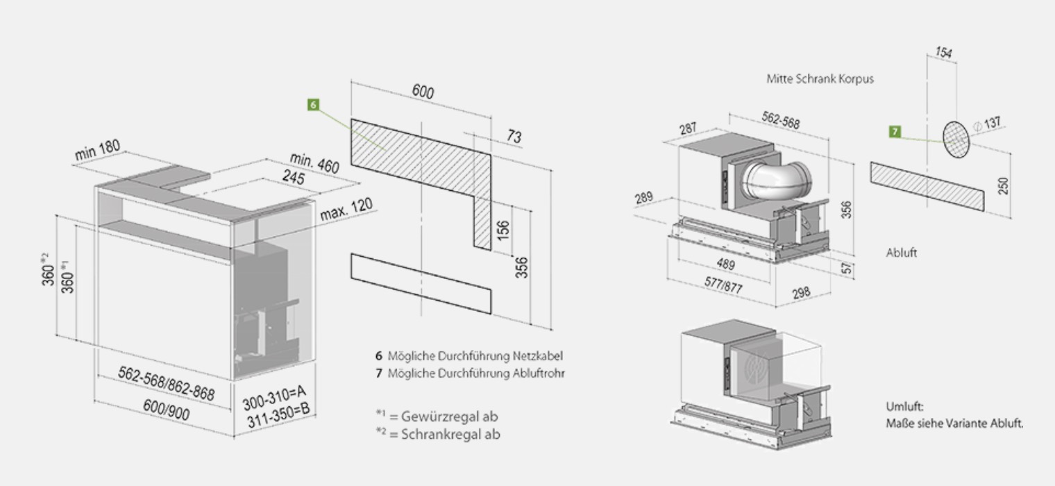 - Bei Einsatz der Umluftvariante ist das Abdeckgitter (Art.-Nr. 1005521) für den Luftauslass mit zu bestellen