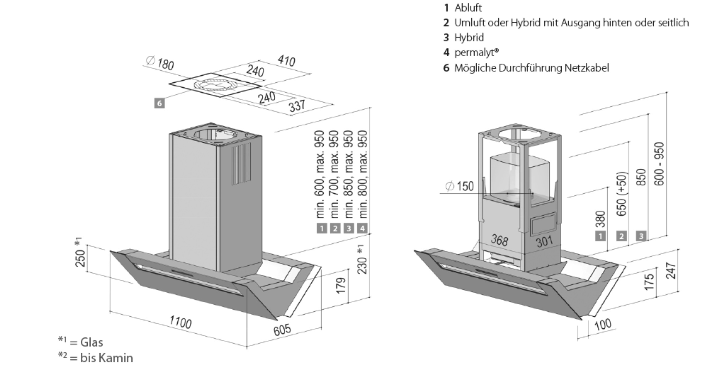 - Kaminverlängerung auf bis zu 1.850 mm möglich