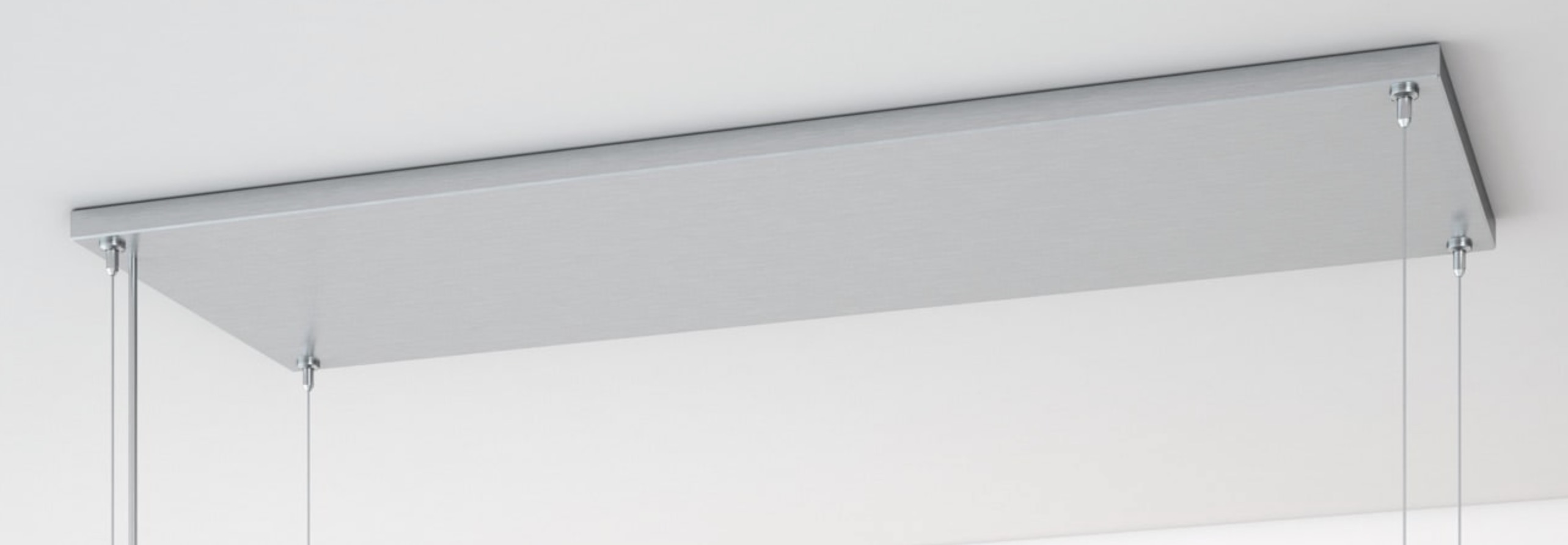 - Seillänge individuell verlängerbar für hohe Räume; die Haube schwebt auf Höhe der Seilverlängerung unter der Decke