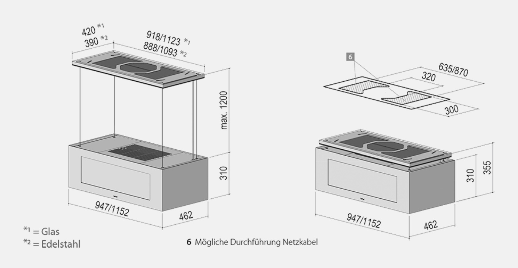 - 1.200 mm Liftfunktion: für Kopffreiheit und den optimalen Abstand zum Kochfeld