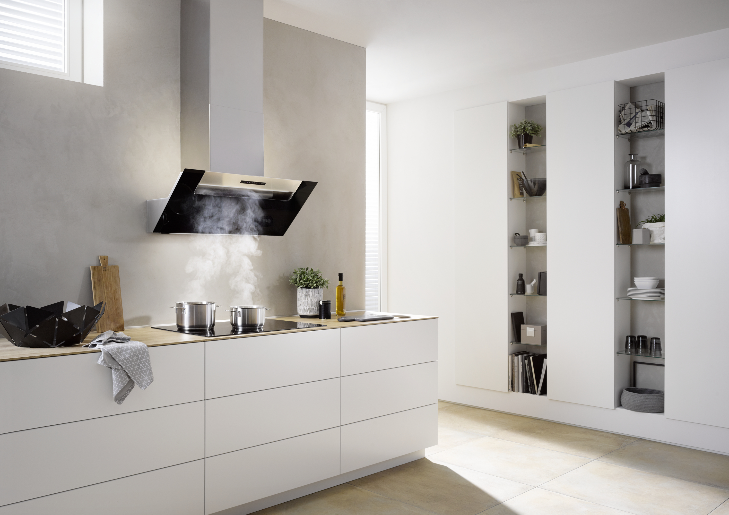 - Patentierte BackFlow-Technologie für höchste Erfassung von Koch- und Bratdünsten und kondensatfreier Glasdekorfläche