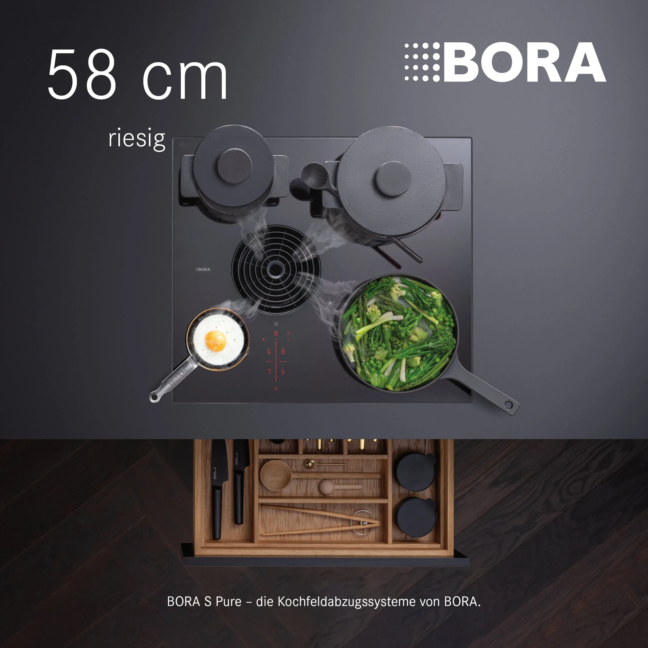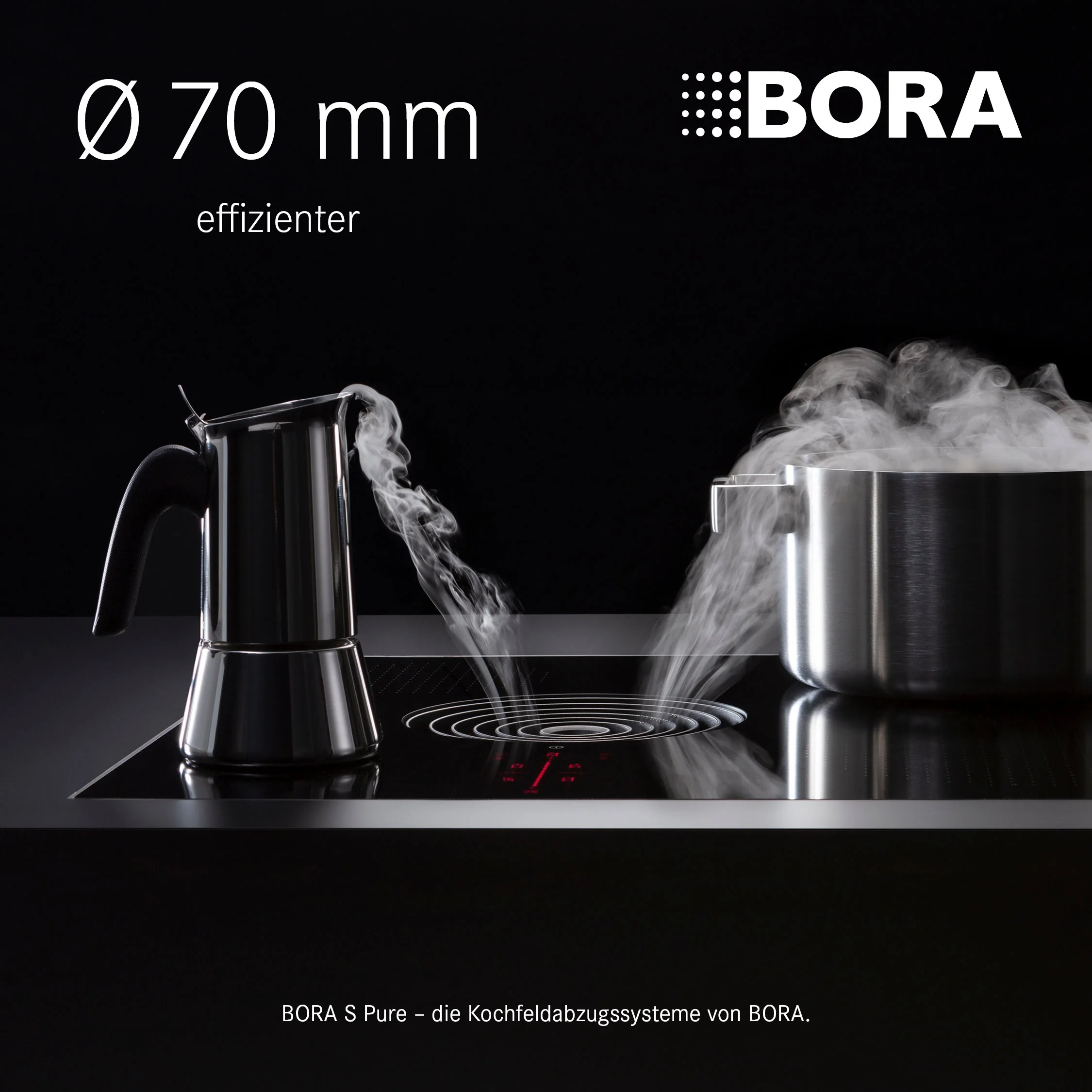 Das BORA S Pure das kompakteste Kochfeldabzugssystem mit gewohnter BORA Abzugsleistung und maximaler Raumnutzung für 60 cm breite Küchenschränke.