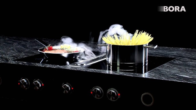 Das BORA M Pure mit maximalem Bedienkomfort und größtmöglicher Flexibilität dank Zoneninduktion links und Flächeninduktion rechts für Kochgeschirr in allen Größen und Formen.