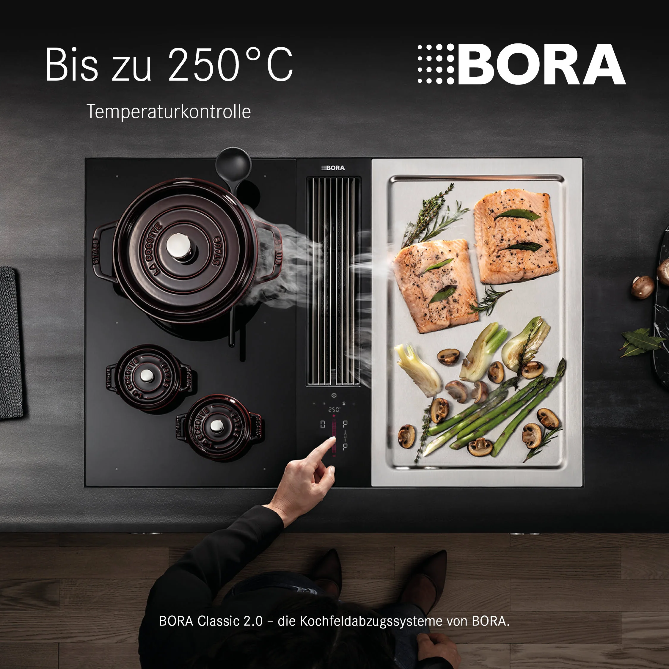 Mit Kochfeldabzugssystemen hat BORA das Ende der Dunstabzugshaube eingeläutet und das Kocherlebnis revolutioniert. Unter dem Motto „More than cooking.“ bietet das deutsch-österreichische Unternehmen nun deutlich mehr: ein umfassendes Portfolio innovativer Premium-Kücheneinbaugeräte für den Lebensraum Küche. Von BORA Kochfeldabzugssystemen über den BORA X BO Dampfbackofen hin zu den Kühl- und Gefriersystemen (BORA Cool und Freeze), der Beleuchtung (BORA Horizon und BORA Stars) und dem lebensmittelerhaltendem Vakuumnieren (BORA QVac): Ziel ist ein ganzheitliches Küchenkonzept mit perfekt aufeinander abgestimmten Produkten und hohem Designanspruch. Kochen, Backen, Braten, Dämpfen, Marinieren, Vakuumieren, Lagern – all das ist mit Produkten von BORA nun durchgängig möglich. Deren Anspruch an Performance und Design verwandelt Küchen von einem reinen Funktionsraum in echten Lebensraum.