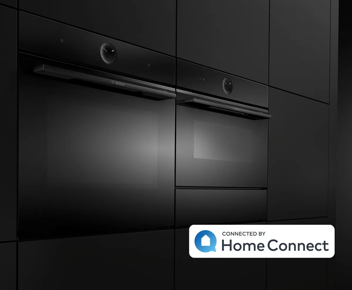 Mache dein Zuhause mit der accent line carbon black von Bosch schöner, moderner und komfortabler. Steuere deine schwarzen Design-Küchengeräte ganz bequem über dein Smartphone und kontrolliere von unterwegs, ob auch wirklich alle Zutaten für dein Lieblingsgericht im Kühlschrank sind. Mit Home Connect genießt du jeden Komfort der Zukunft und machst dein Leben einfacher.
