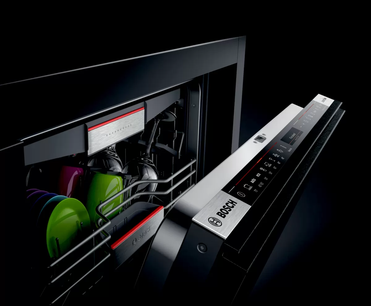 accent line carbon black Geschirrspüler von Bosch spülen dein Geschirr glasklar und sauber. Die Weltneuheit Extra Clean Zone im Oberkorb kümmert sich mit drei auf Knopfdruck zuschaltbaren, rotierenden Wasserdüsen um hartnäckige Schmutzreste. Sensorgesteuerte PerfectDry Technologie trocknet dein Geschirr brillant und ohne lästige Wassertröpfchen.