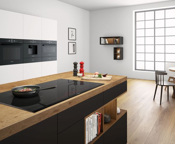 accent line carbon black: edles Design für eine hochwertige Küche. - Weniger ist manchmal mehr: Die accent line carbon black Linie von Bosch für die Ausstattung deiner hochwertigen Küche bietet dir eine Reduktion auf das Wesentliche. Egal ob Backöfen, Kochfelder, Kaffeevollautomaten, Dunstabzugshauben oder Kühl- und Gefriergeräte – accent line carbon black Geräte für die anspruchsvolle Einbauküche gibt es aus allen Segmenten. Dabei vertrauen wir auf hochwertige Sensortechnik, einfache, intuitive Bedienbarkeit und klares, minimalistisches Design mit schwarzem gebürstetem Edelstahl und schwarzem Glas für eine hochwertige Küche. Perfekt war noch nie so schön.