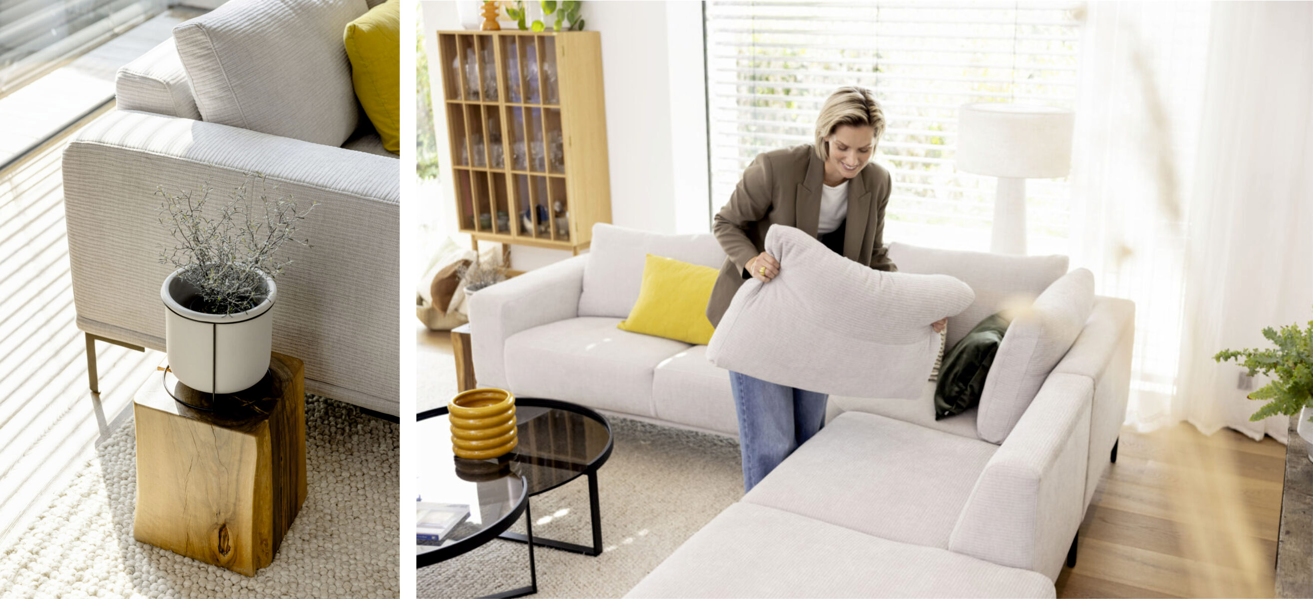 Caro liebt es, Freunde bei sich zu haben und gemeinsame Abende zu genießen – egal ob mit gutem Essen oder entspannten Gesprächen. Auch im Alltag legt sie Wert auf kleine Details, ob beim Outfit oder in ihrer Wohnung, die Stil und Gemütlichkeit vereint. Sie sagt gern, dass ihr Zuhause ein Spiegel ihrer Persönlichkeit ist: entspannt, herzlich und stilvoll zugleich. So fühlt sich jeder willkommen, und Caro kann sich auf ihre Art und Weise entfalten – mit einem Sofa, das genauso vielseitig ist wie sie selbst.