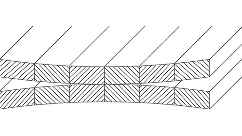 Quellen: über 60 % Luftfeuchtigkeit. Die Form des Holzes ändert sich, es wird größer.