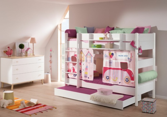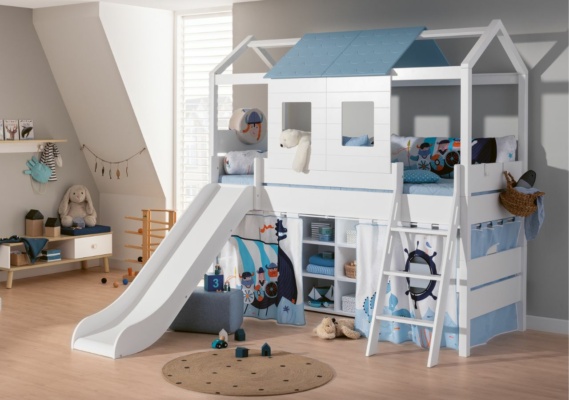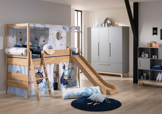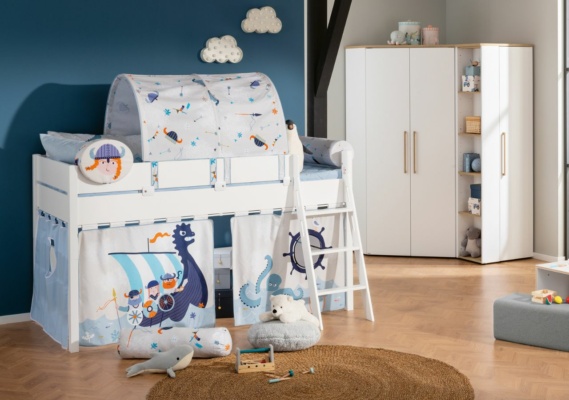 Gerade für jüngere Kids ist eine eigene kleine Höhle ein toller Rückzugsort. Genau für dieses Bedürfnis haben wir unsere Hochbett-Vorhänge konzipiert, die in verschiedenen Designs und Ausführungen erhältlich sind. Diese können mithilfe einer Vorhang-Stange, die vorne und je nach Wunsch an den Seiten des Betts verläuft, angebracht werden. So wird der Bereich unter dem Hochbett verdunkelt und es entsteht ein gemütliches Höhlen-Feeling. Hier können die Kleinen spielen, lesen oder einfach mal für sich sein. Unser Tipp: Integriere zusätzlich noch ein angenehm gedimmtes Licht. So kannst du das Hochbett nicht nur gemütlich gestalten, sondern stellst darüber hinaus sicher, dass die Kleinen auch am Abend in ihrer Höhle spielen können. Übrigens: Die PAIDI-Vorhänge können nicht nur am Hochbett, sondern auch an unseren Spiel- und Etagenbetten angebracht werden.