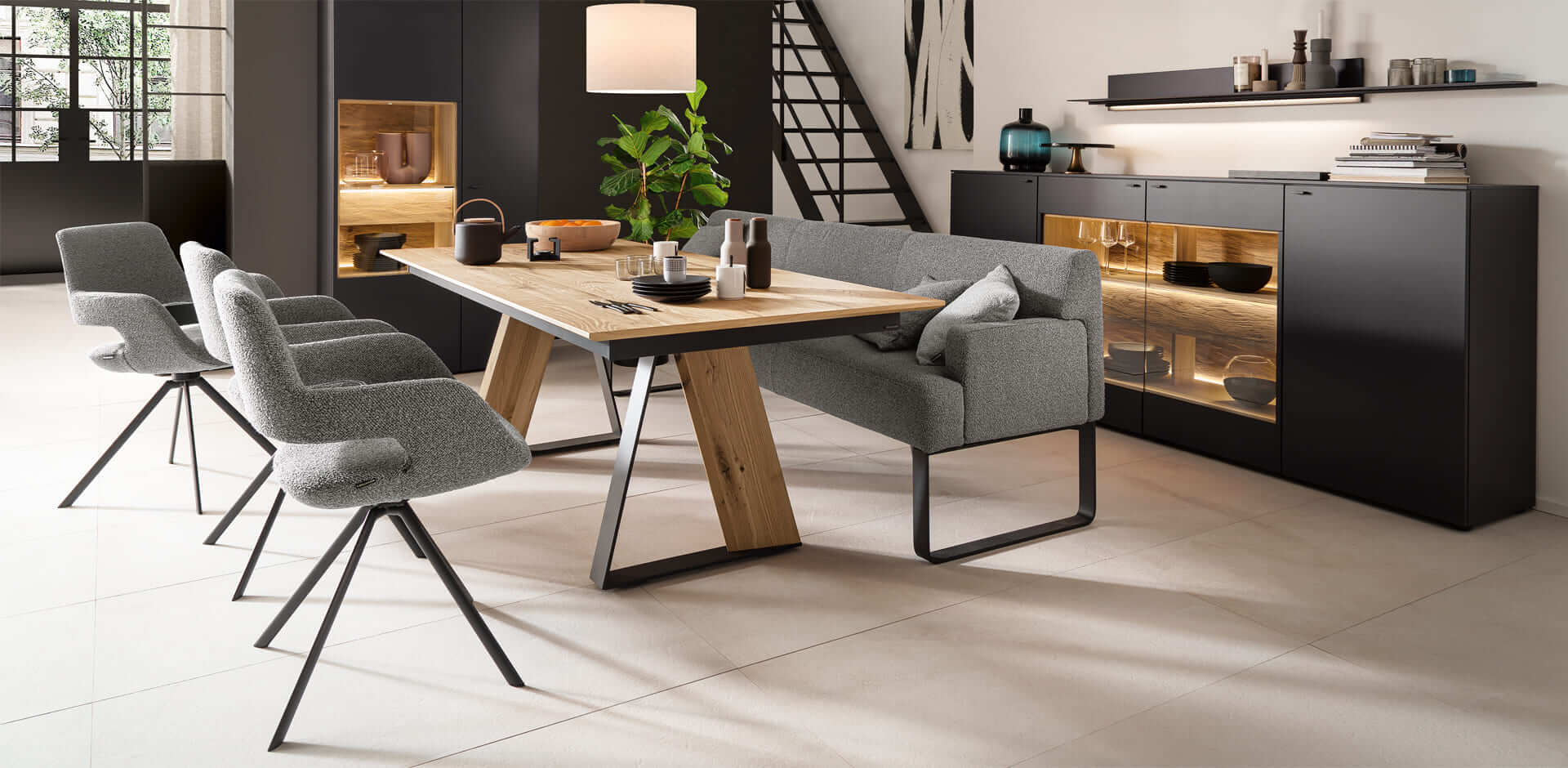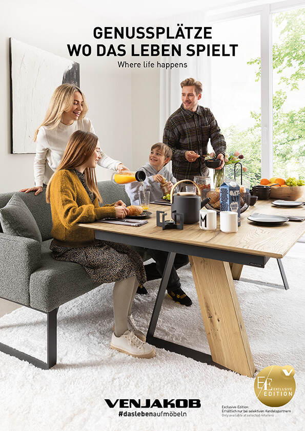 Das Leben aufmöbeln - Wohlfühlen mit Manufakturqualität macht aus Räumen ein Zuhause. Wenn die etwas bessere Handwerkskunst im Wohnraum auf das etwas bessere Design trifft, wenn langlebige Verarbeitung mit nachhaltigem Denken rund um den Esstisch Hand in Hand geht – dann möbelt da jemand das Leben auf.