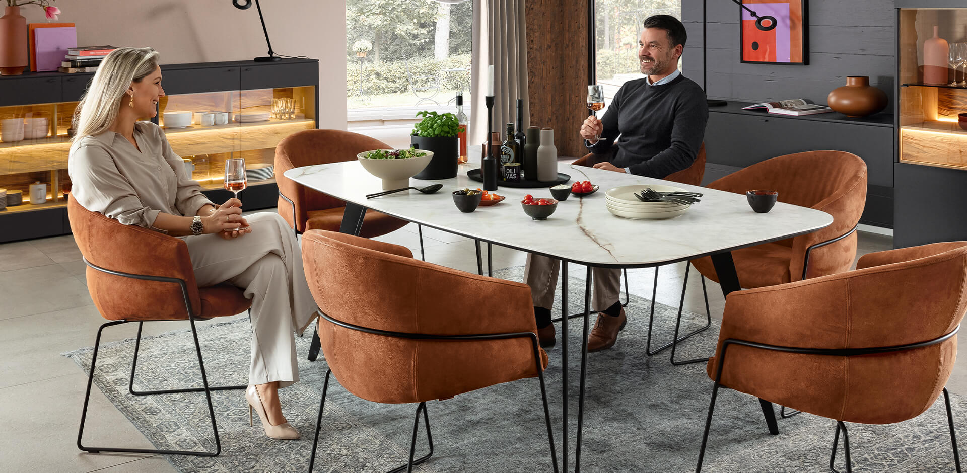 Vom Tisch über die Stühle bis hin zu den passenden Beimöbeln, Anrichte und Co.: Venjakob Möbel schaffen Atmosphäre und den passenden Rahmen für Geburtstage, Konfirmationen und das gemütliche Sonntagsfrühstück. Erfahren Sie mehr: Unsere Kataloge zeigen Venjakob Esszimmer in allen Details.