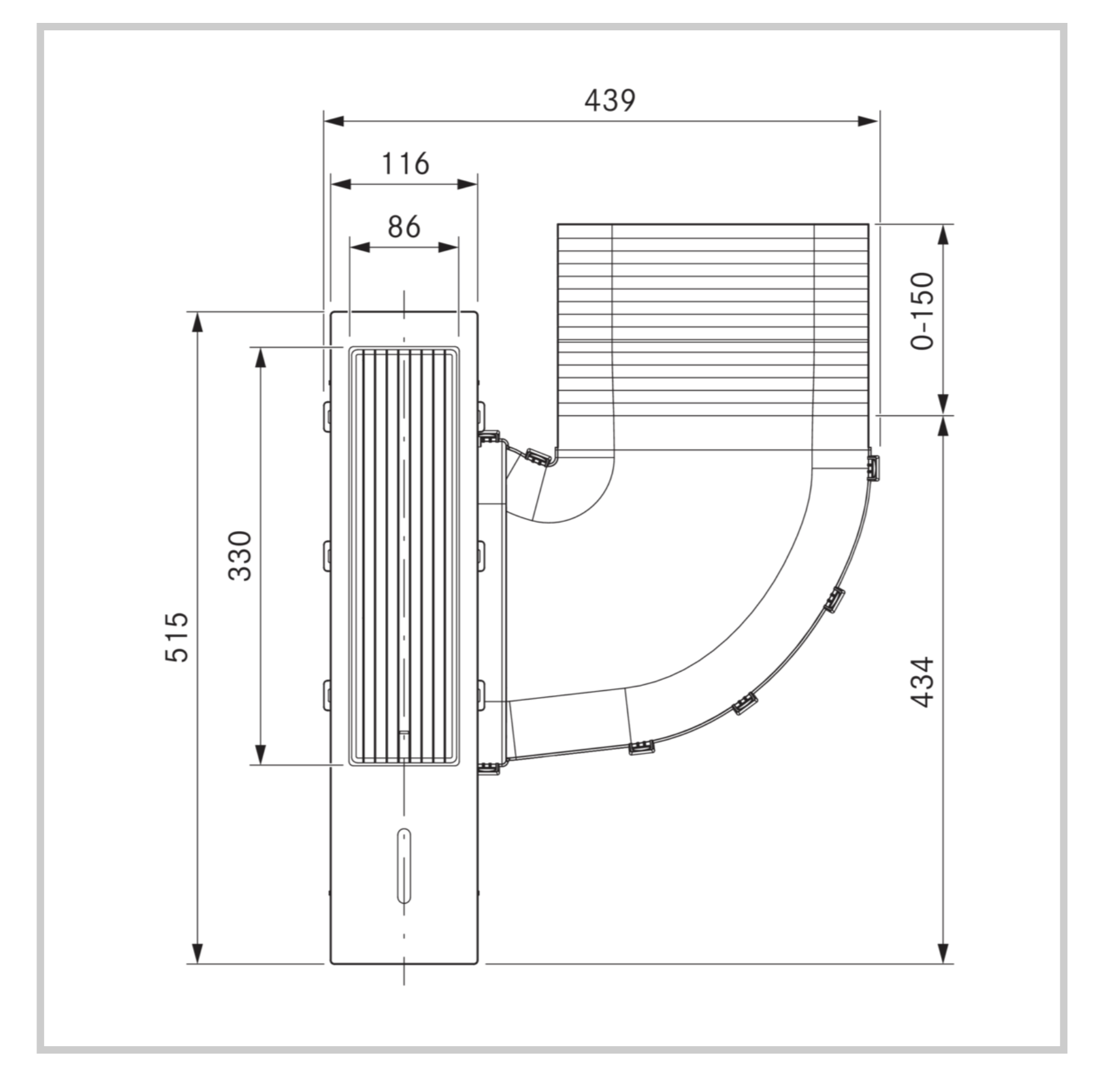 - Durch kompakte Abmessungen und einer Kochfeldtiefe von 515mm, ist das System für die Standard-Küchenzeile (60cm ab Vorderkante Front) aller gängigen Hersteller passend.