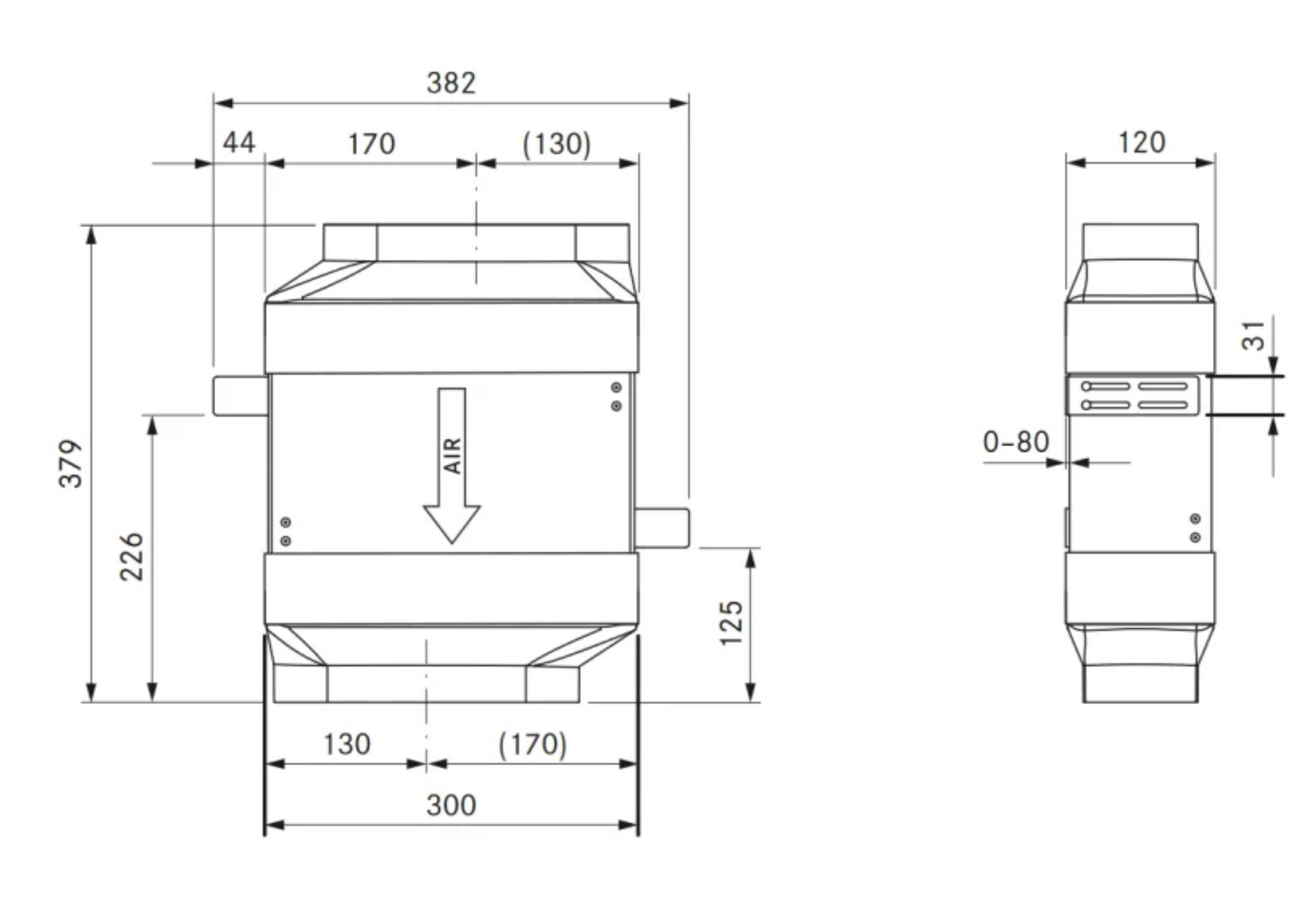 - Einsatz eines zusätzlichen Lüfterbausteins für sehr lange bzw. komplexe Abluftstrecken möglich