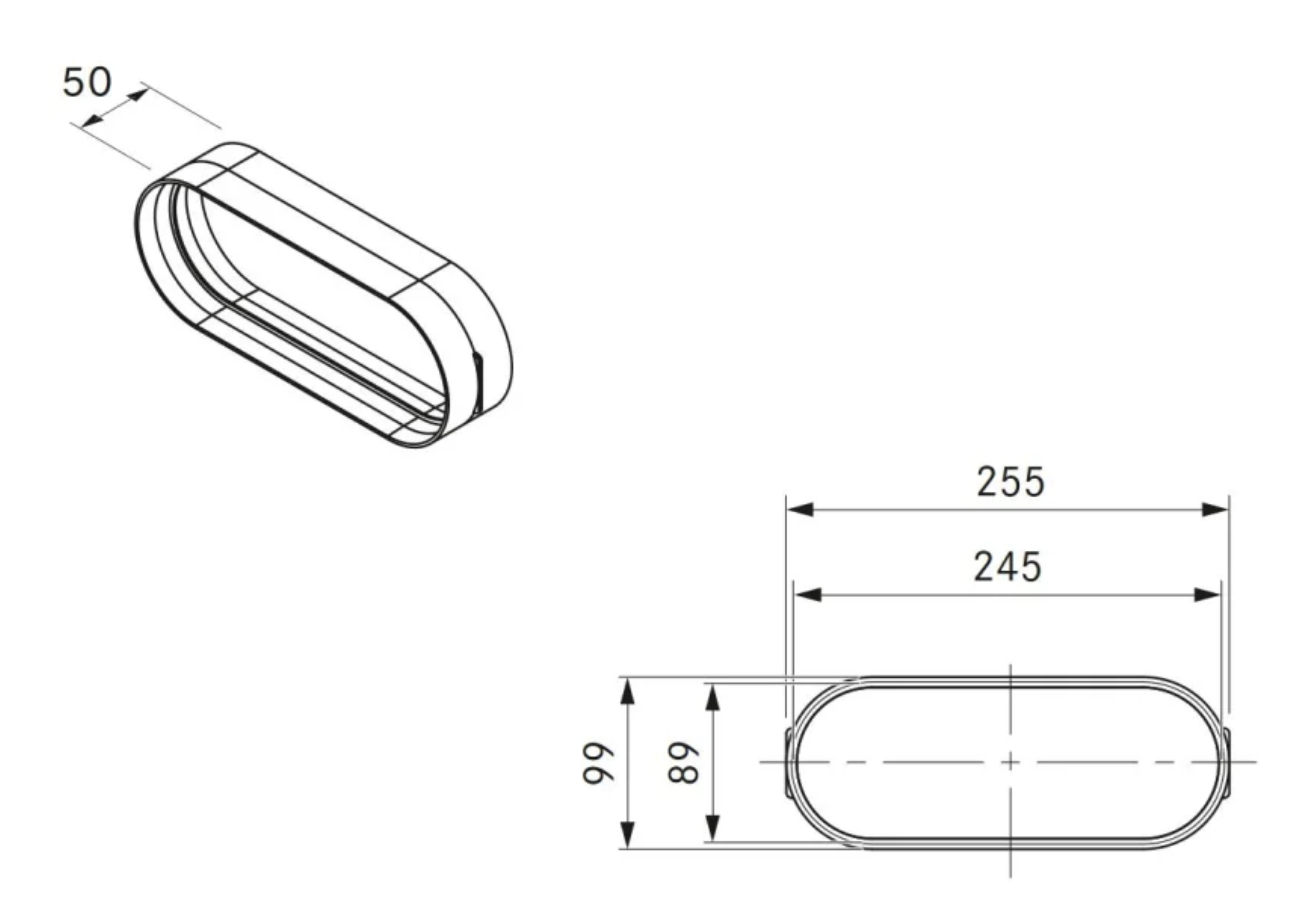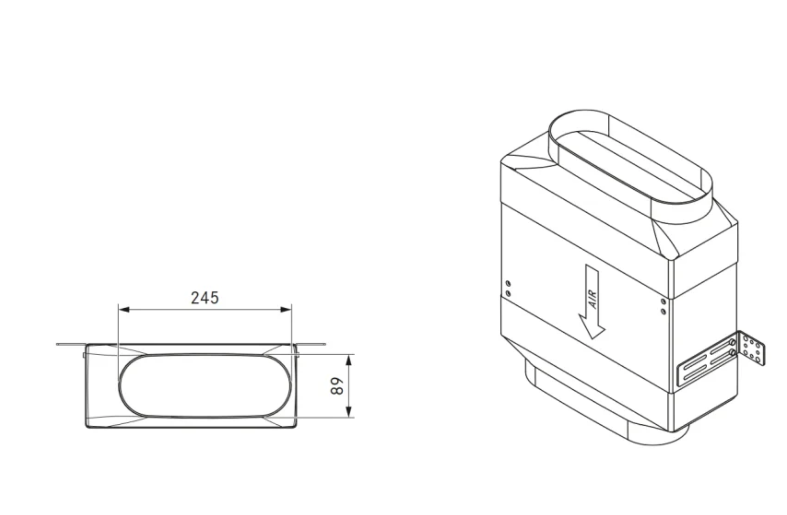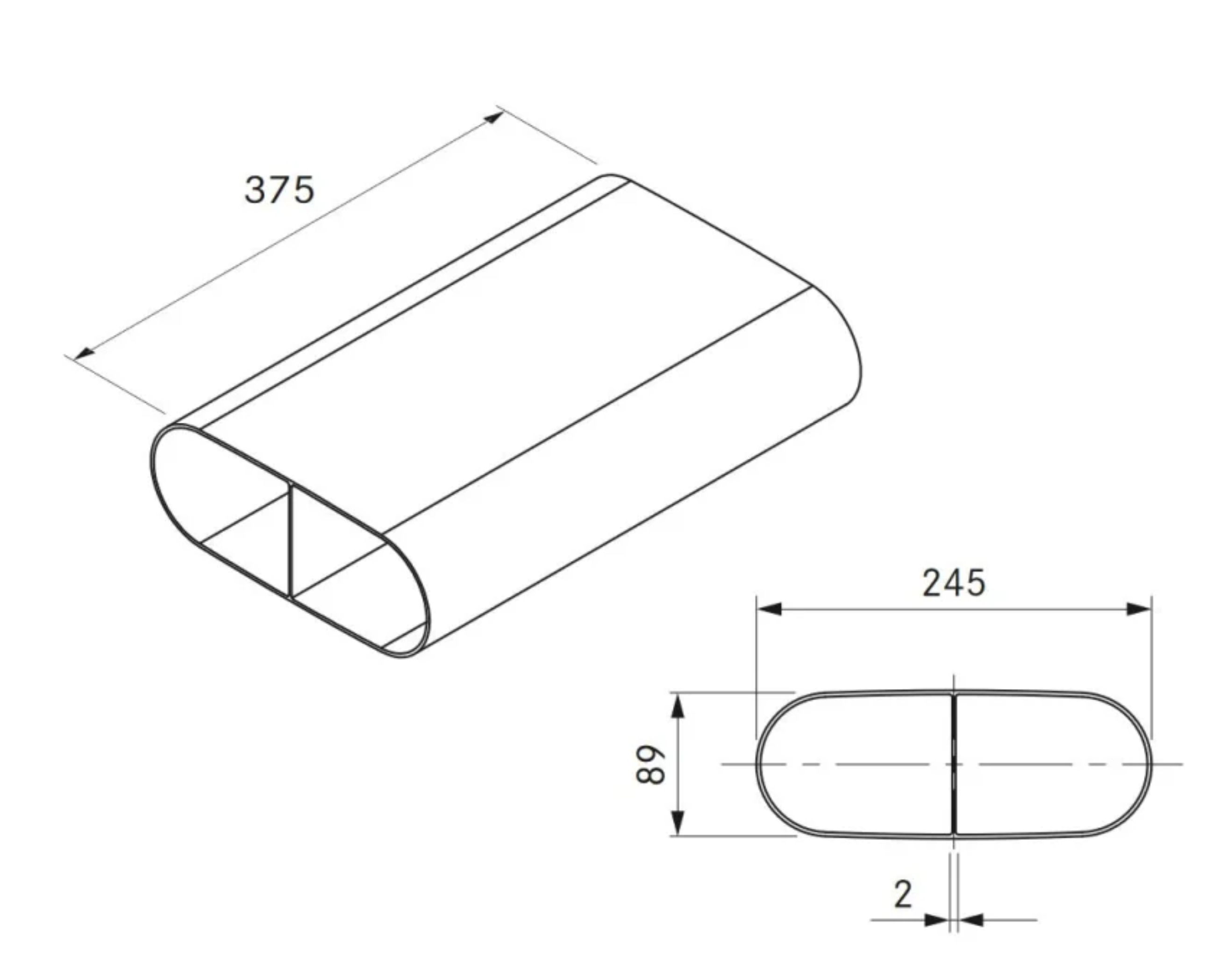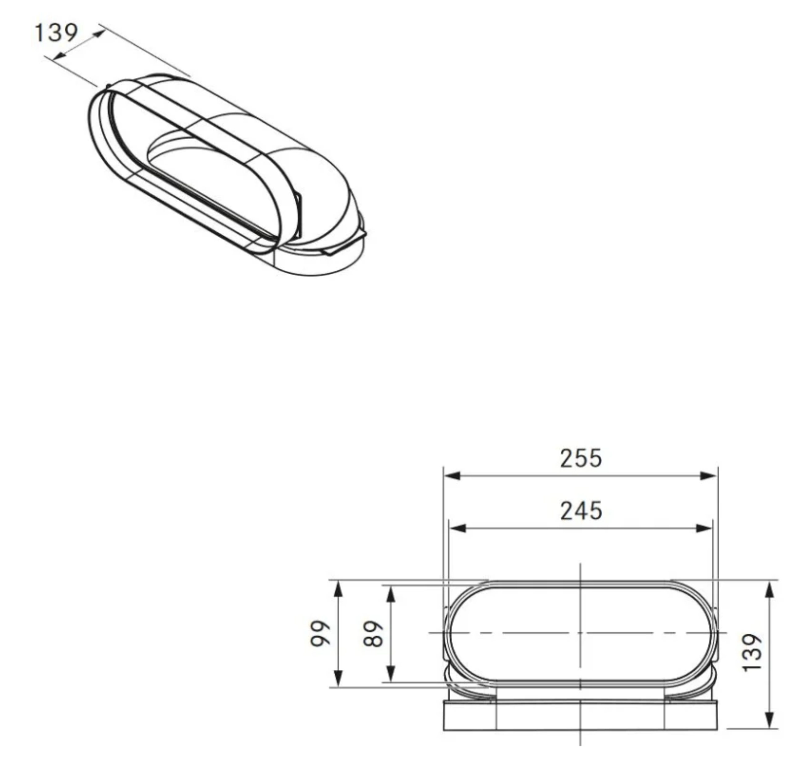 - Kanalanschluss flach 245 x 89 mm
