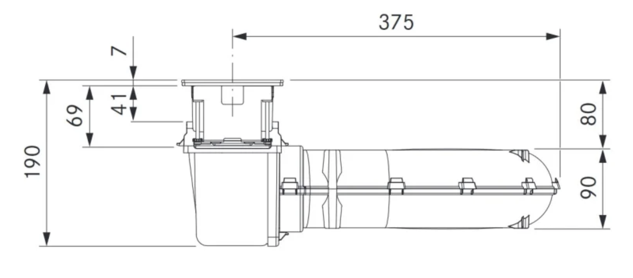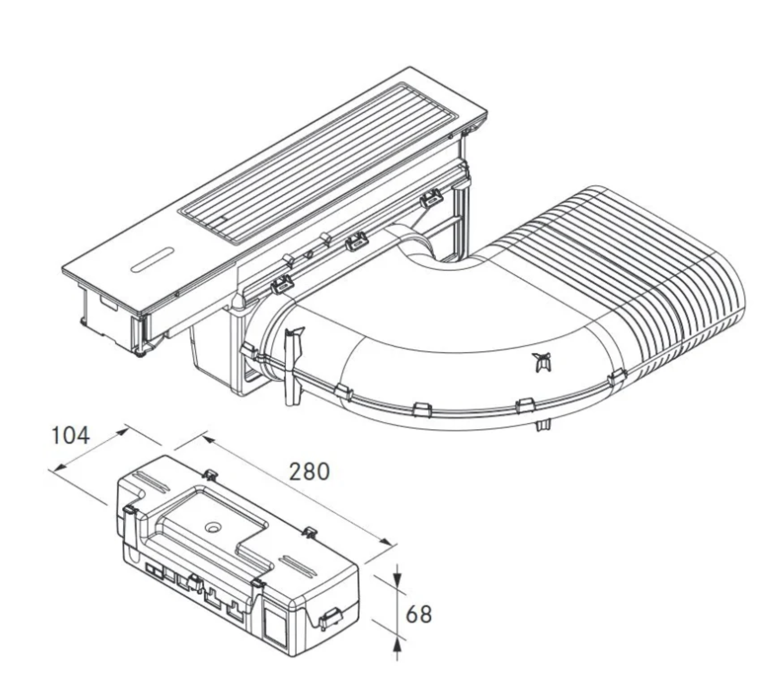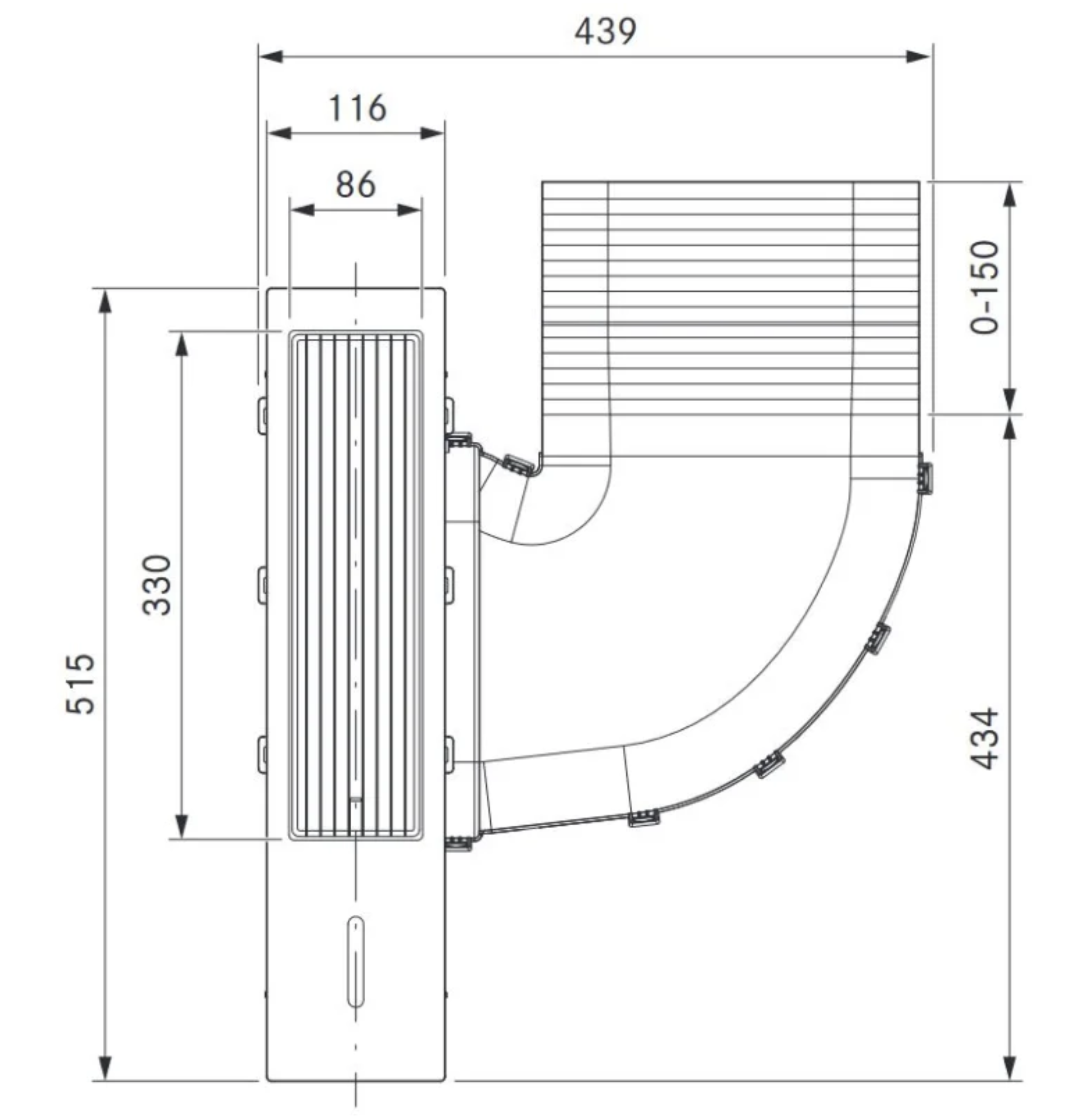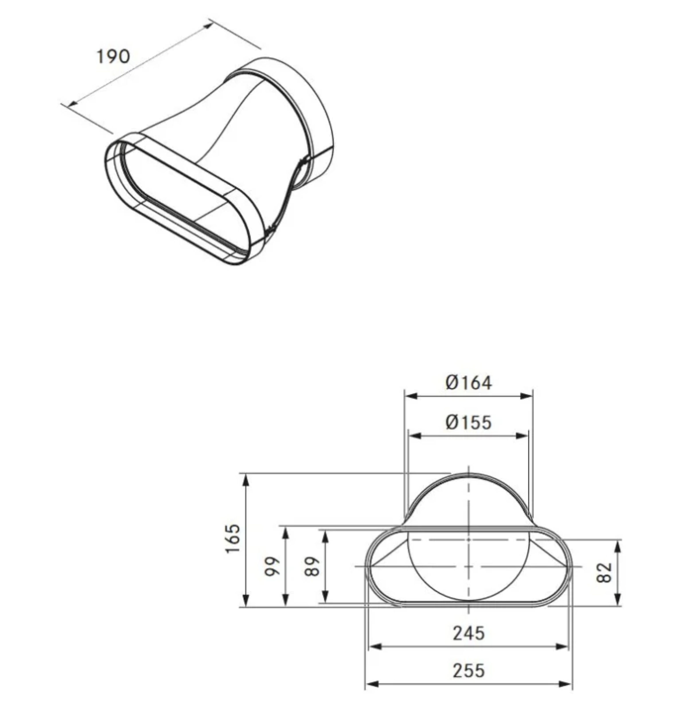 - Kanalanschluss flach 245 x 89 mm
