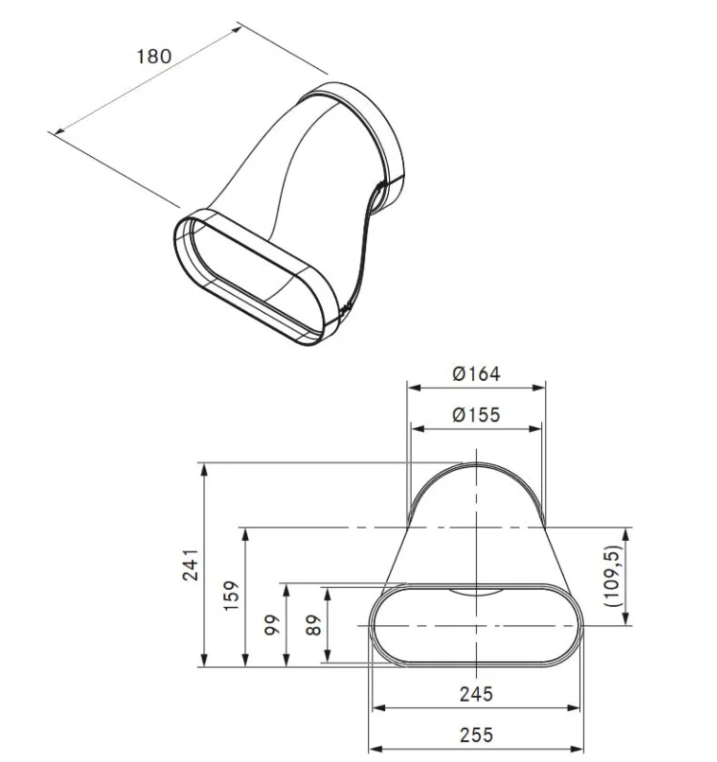Produktbeschreibung Ecotube EFRV110/1 Übergang flach rund Versatz 110mm: