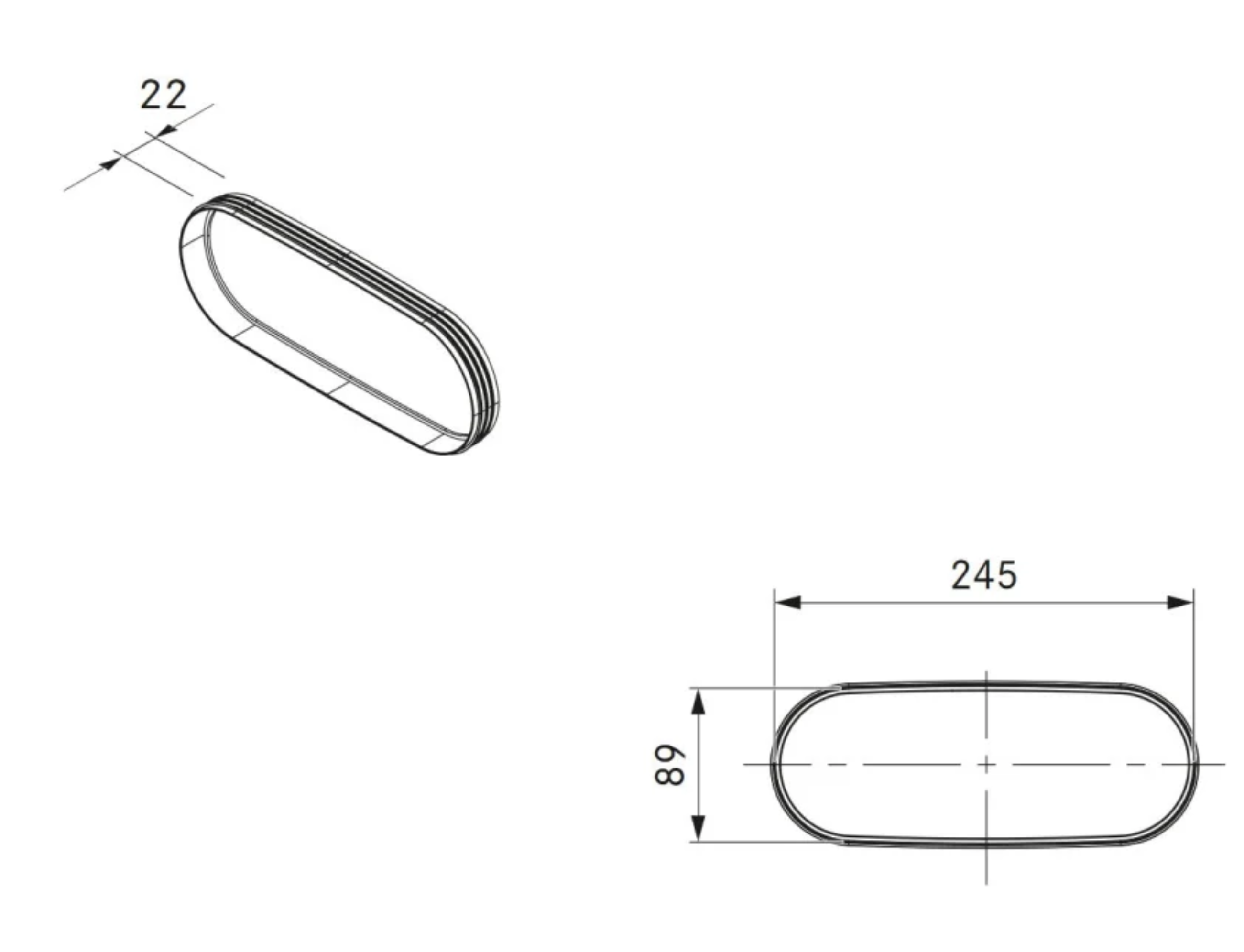 - Abmessungen (Breite x Tiefe x Höhe) 245 x 22 x 89 mm