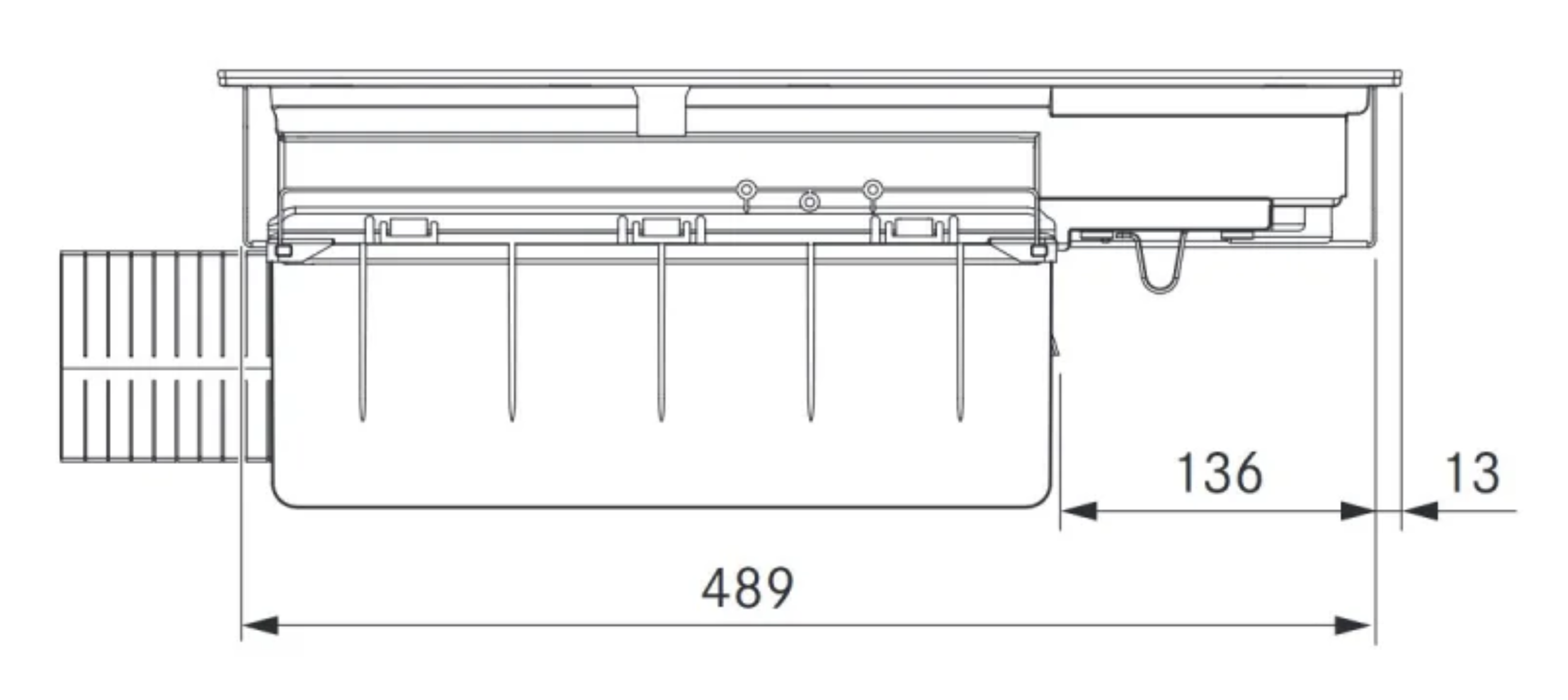 - Geht beim Kochen mal was daneben, fängt die integrierte Wanne Festes wie Flüssiges sicher auf.