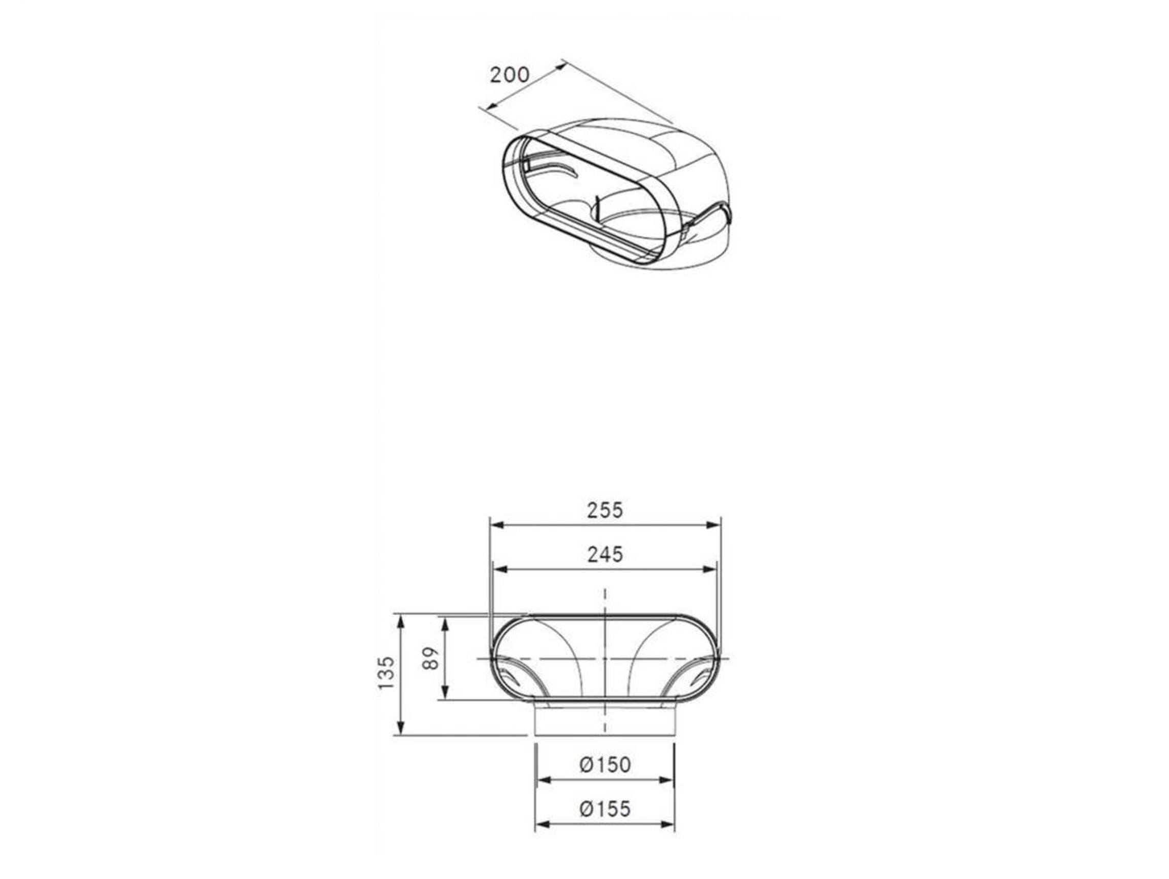 Produktinformationen "Bora EFR90/1 Ecotube Übergang 90° flach rund inkl. Dichtungsmaterial "