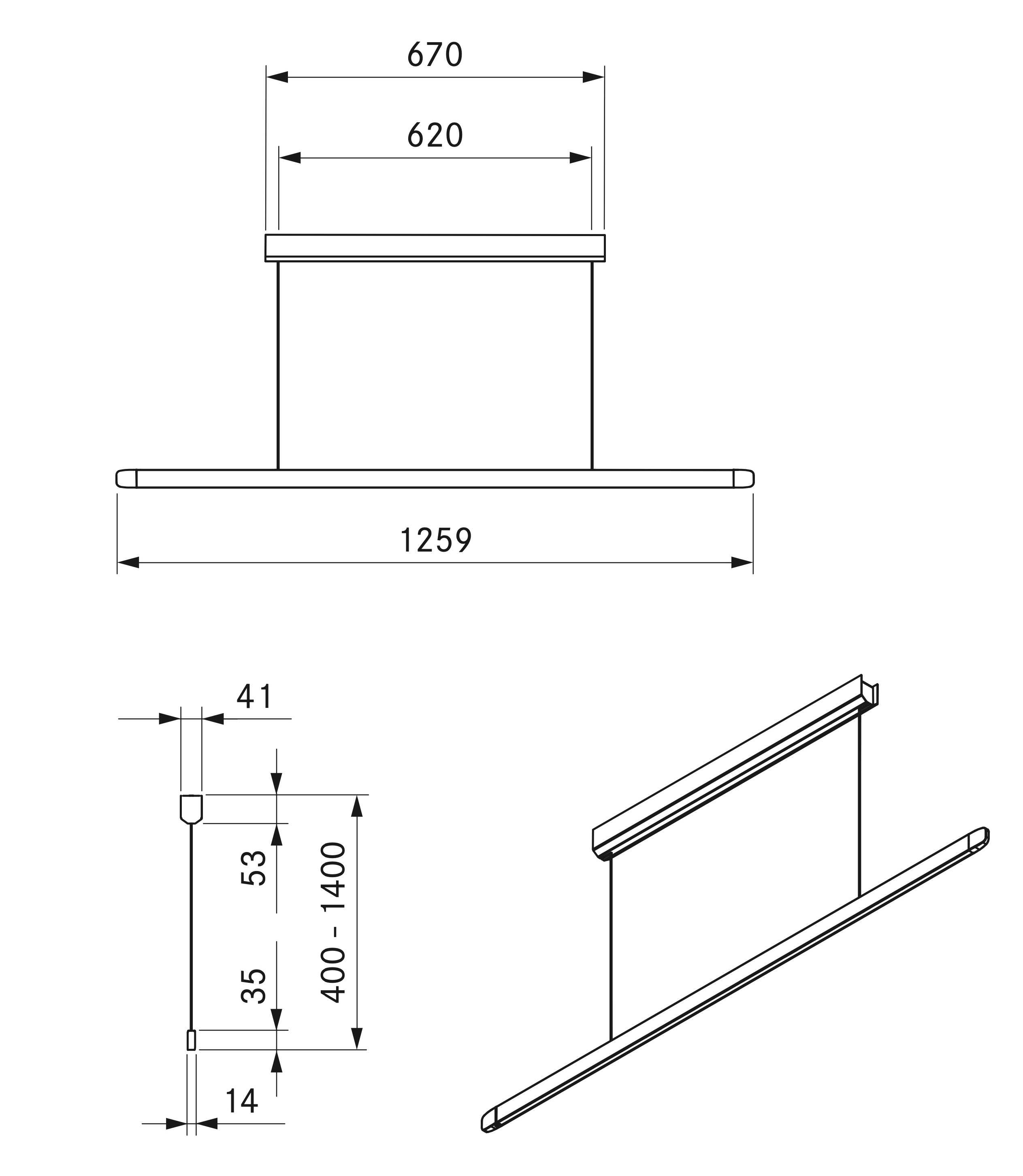 - Abmessungen Leuchtenkörper : 1259 x 14 x 35 mm