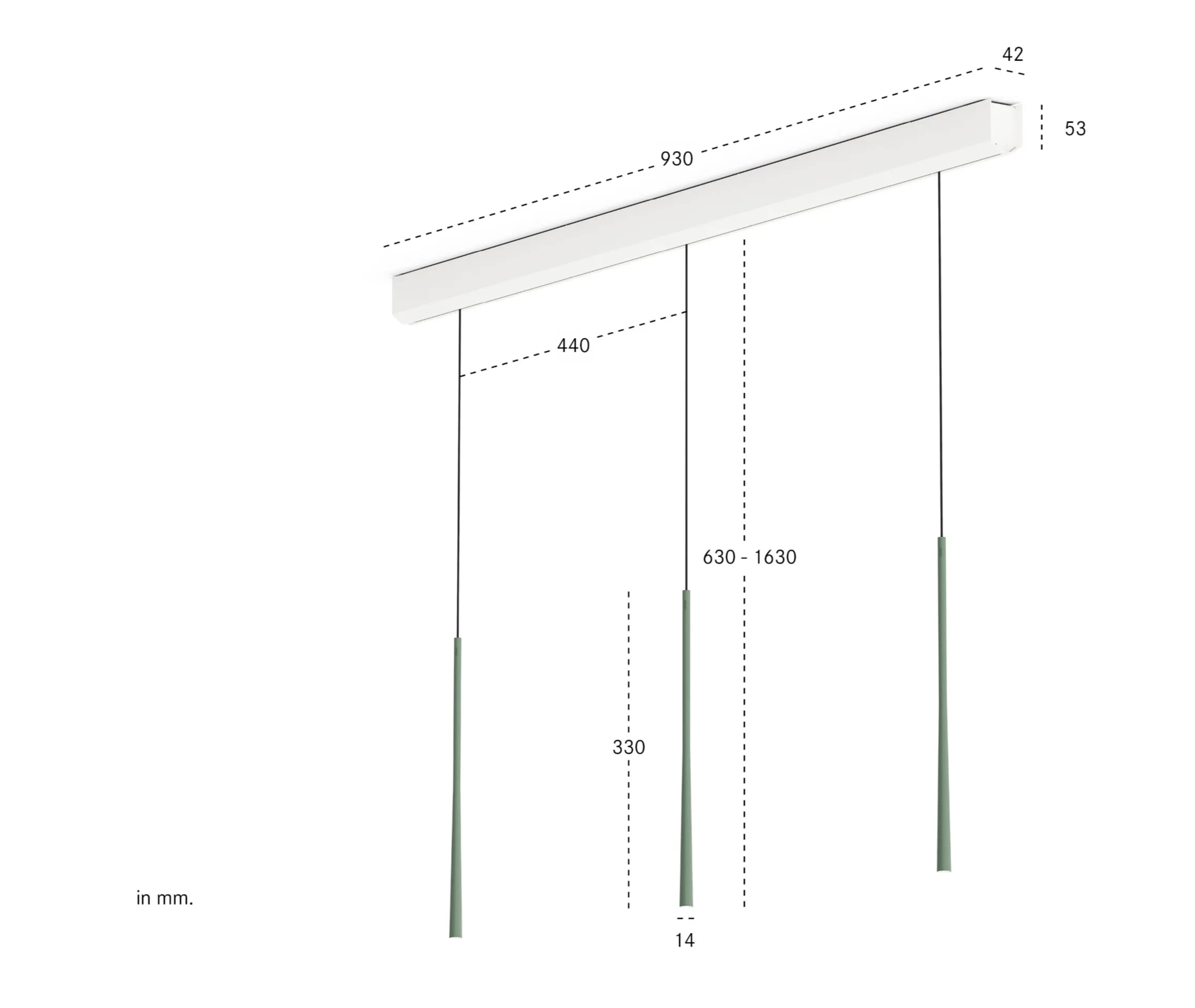 BORA LSLMG Stars Pendelleuchte 3-fach linear moosgrün