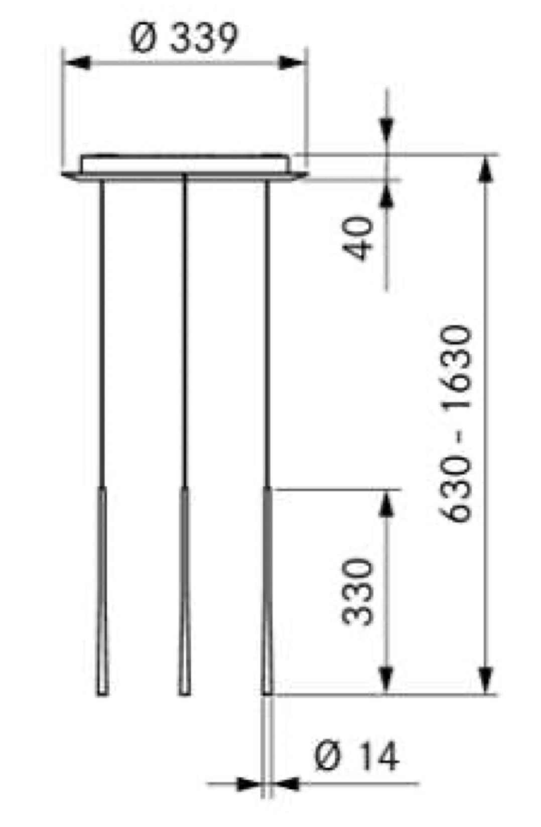 - Abmessungen Leuchtenkörper: 3 x ⌀ 14 x 330 mm