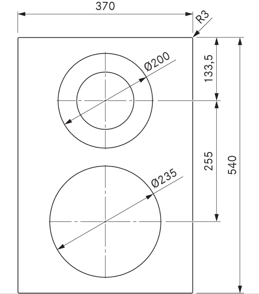 - Größe Kochzone hinten: Ø 120 / 200 mm