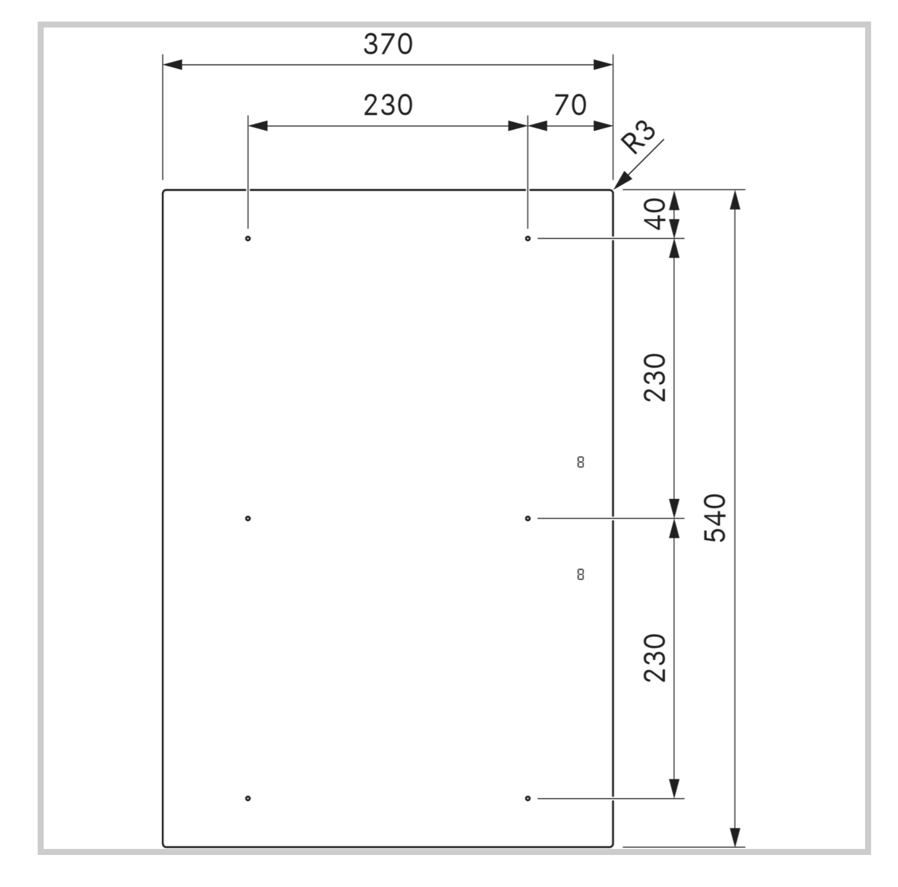 - Abmessungen (Breite x Tiefe x Höhe): 370 x 540 x 52 mm
