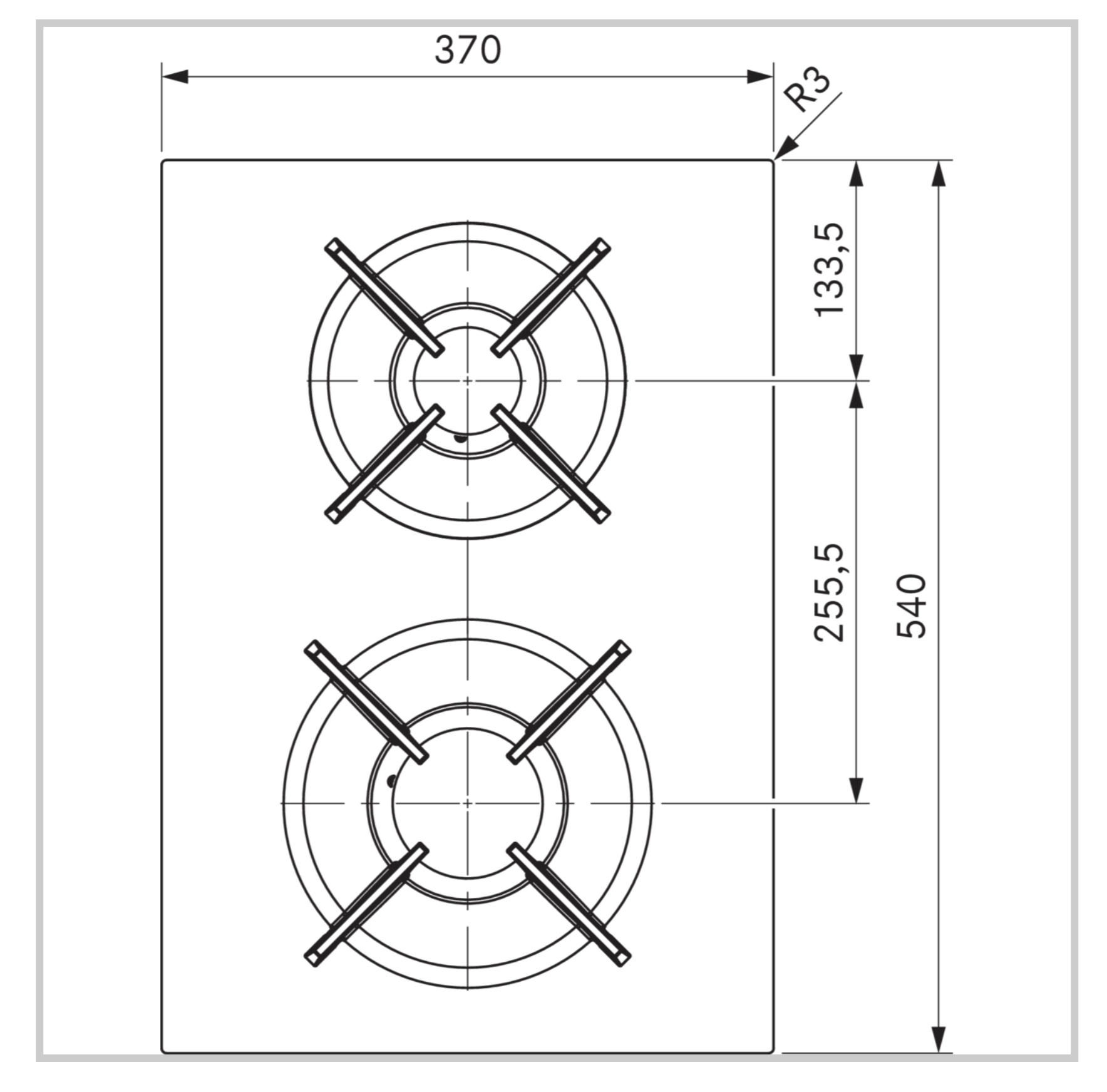 - Größe Kochzone vorne: Ø 240 mm