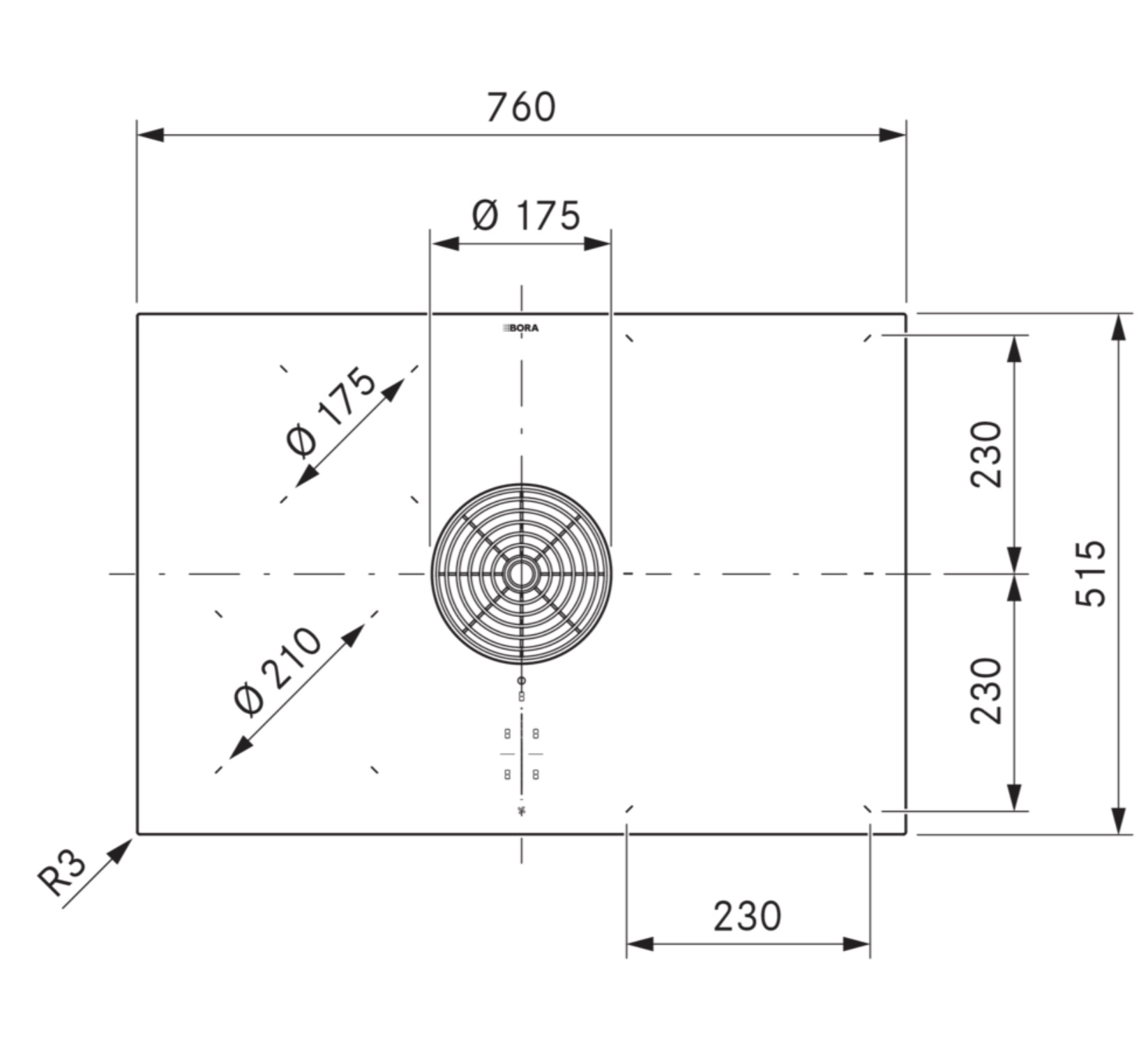- Kanalanschluss: BORA Ecotube