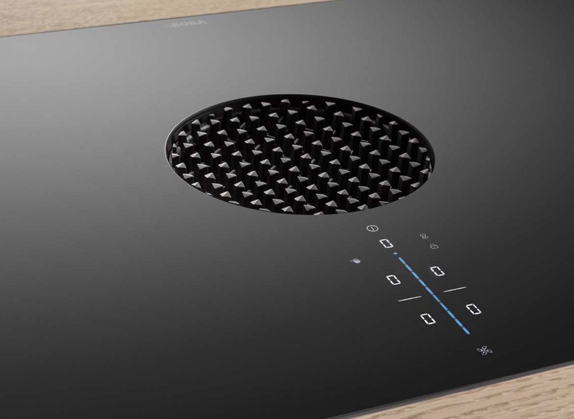 - Die BORA X Pure Einströmdüse zentriert sich dank konischer Führung automatisch und ohne Verrastung im Kochfeld.