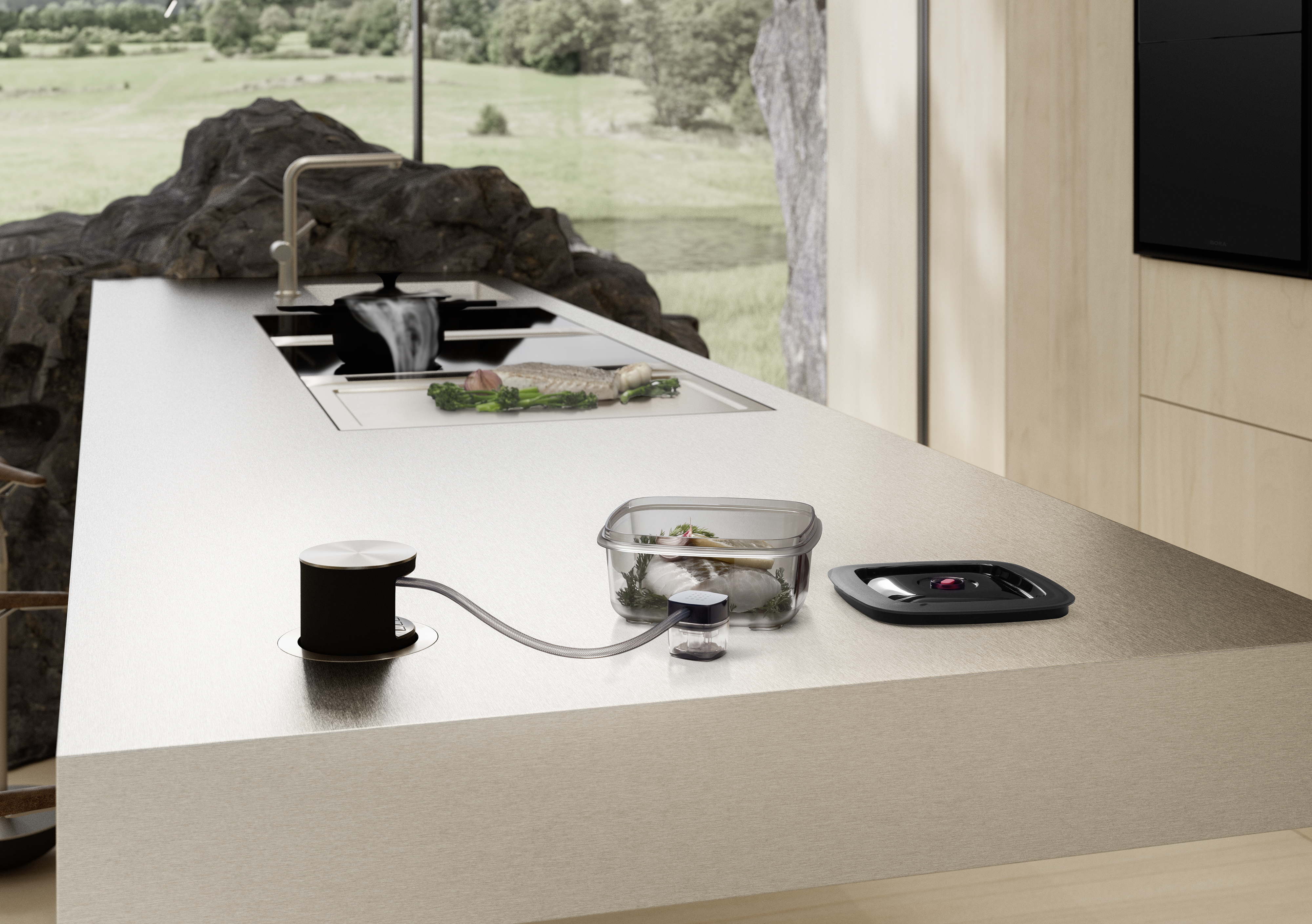 - Dank des innovativen und einzigartigen Einbaukonzepts raubt der BORA QVac keinen heißbegehrten Platz auf den Arbeitsflächen in der Küche: Das Gerät befindet sich – wie der Unterbau der Kochfeldabzüge – unter der Arbeitsplatte. Der Einbauvakuumierer kann sowohl flächenbündig wie auch aufgesetzt eingebaut werden.