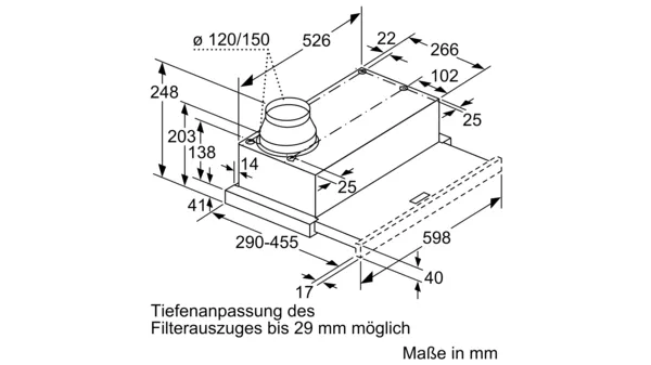 Abluft- und Umluftbetrieb möglich. Passendes Zubehör für Umluftbetrieb seperat erhältlich.