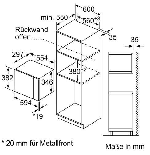 Einbaugerät für Wandschrank, Aufsatzschrank, Unterschrank, Highboard oder Hochschrank. Einbau hinter Lifttür ist nicht zulässig.