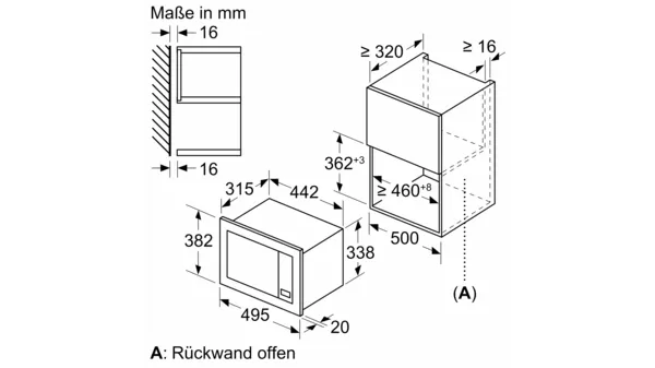 Einbaugerät für Wandschrank, Aufsatzschrank, Unterschrank, Highboard und Hochschrank.