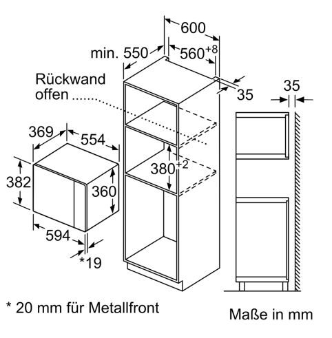 - Nischenhöhe: 380-382 mm
