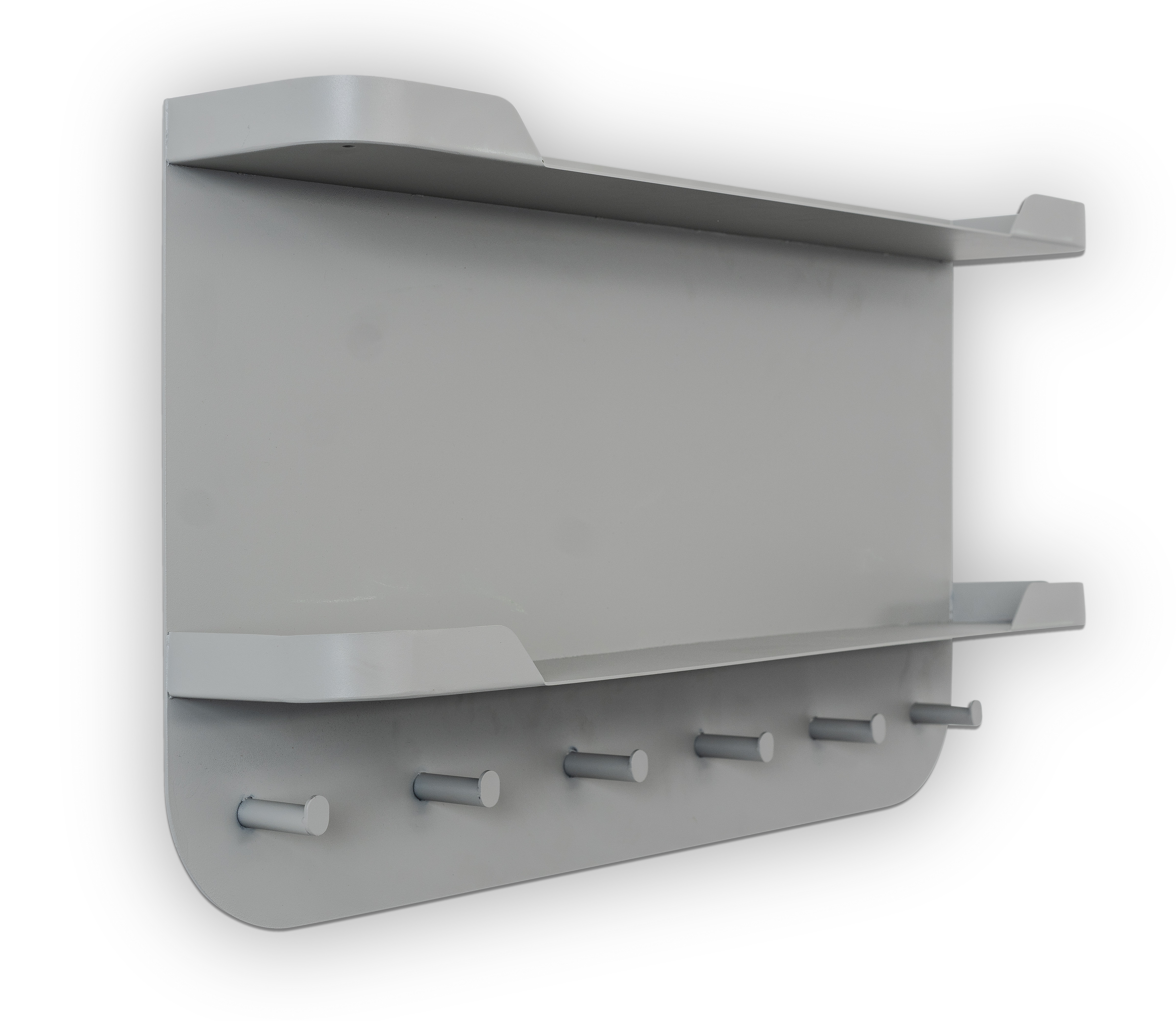 - Ausführung: Metall grau, 6 Haken, 2 Ablagen - Farbe kann leicht abweichen