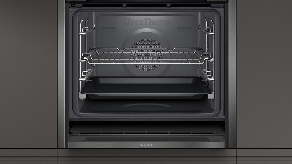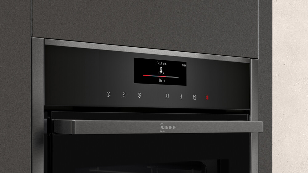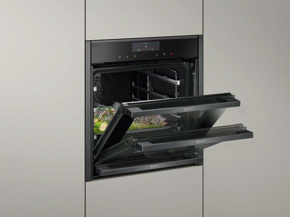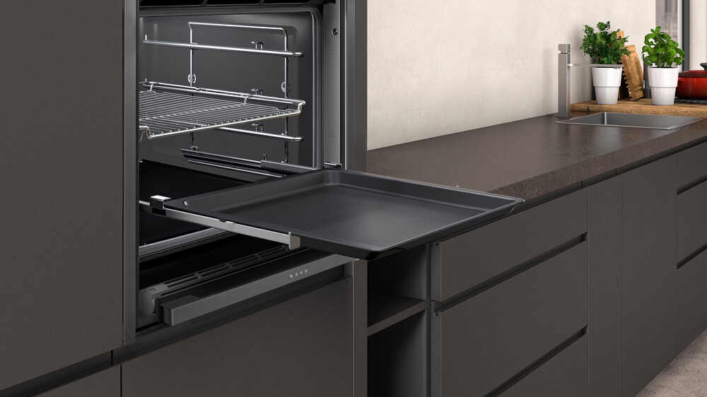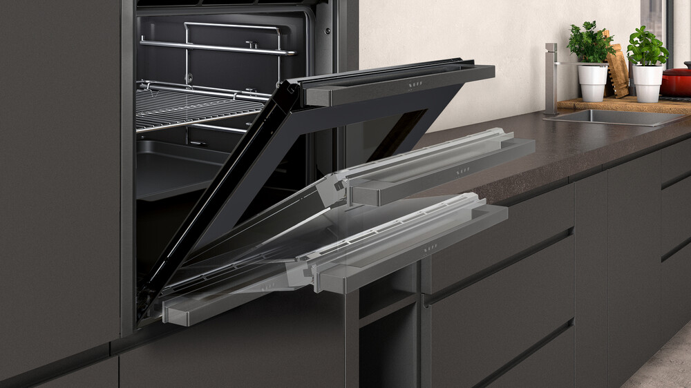 Vor über 20 Jahren hat NEFF die einzige voll versenkbare Backofentür Slide & Hide® entwickelt, die nicht im Weg steht, sondern sanft und nahezu geräuschlos unter den Backofen gleitet. So haben Sie freien und ungehinderten Zugriff auf den Garraum. Der mitdrehende Türgriff dreht sich synchron zur Bewegung der Tür und liegt jederzeit bequem in der Hand. Die versenkbare Backofentür gibt es nur von NEFF.