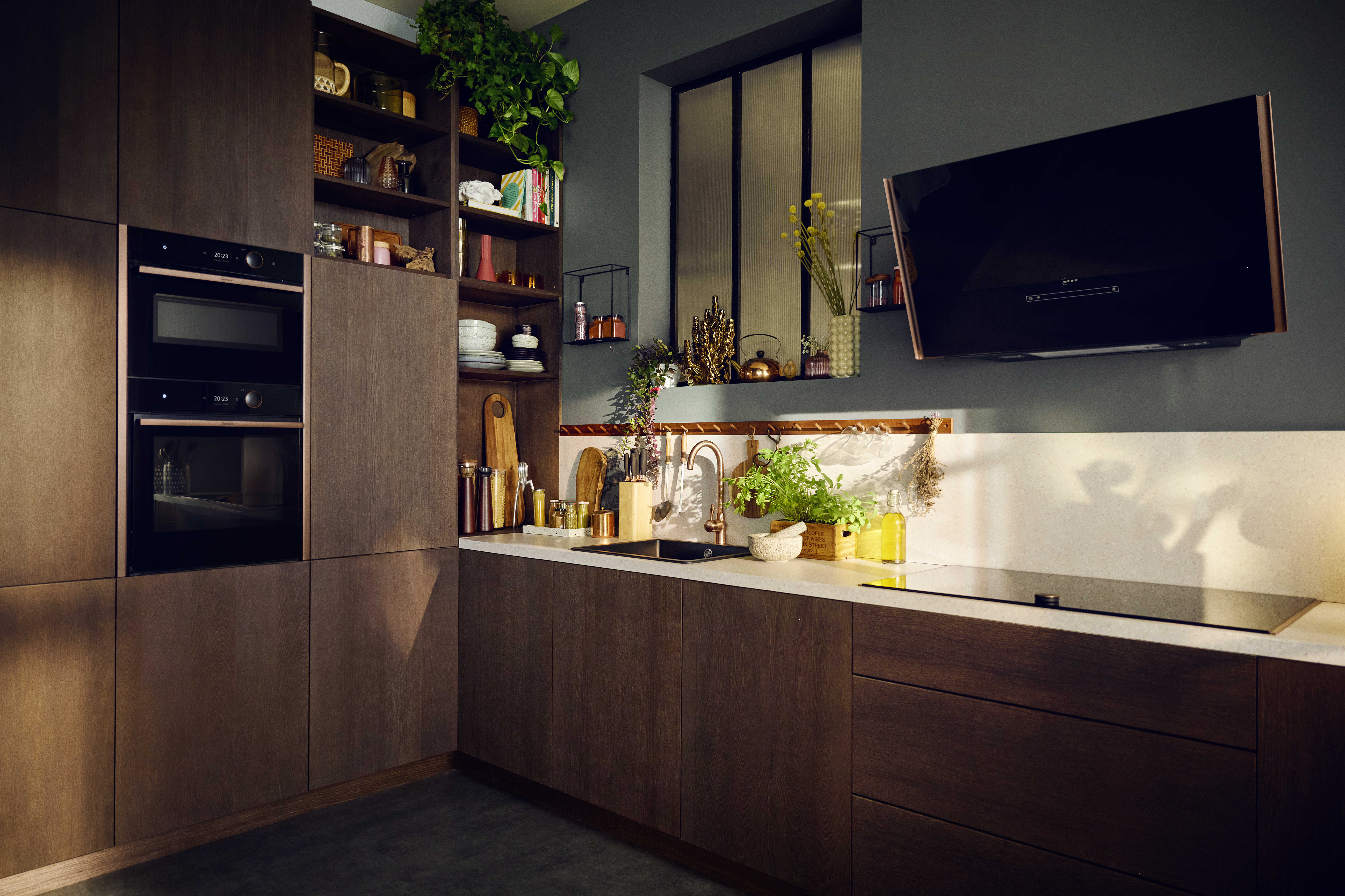 Machen Sie mit individuellen Details Ihre Einrichtung unverwechselbar - Flex Design bietet Ihnen die Freiheit, Ihre Geräte mit 4 faszinierenden Farben für Seitenleisten und Griffe individuell zu gestalten. Tauchen Sie ein in eine Welt voller Kreativität und lassen Sie Ihre Küche in Deep Black, Anthracite Grey, Metallic Silver oder Brushed Bronze erstrahlen. Wählen Sie eine Gerätefarbe, die zu Ihrer Küche passt. Wählen Sie aus einer Vielzahl von NEFF Collection Hausgeräten. Lassen Sie mit Seamless Combination Ihre Lieblingsgeräte optisch naht los miteinander verschmelzen.