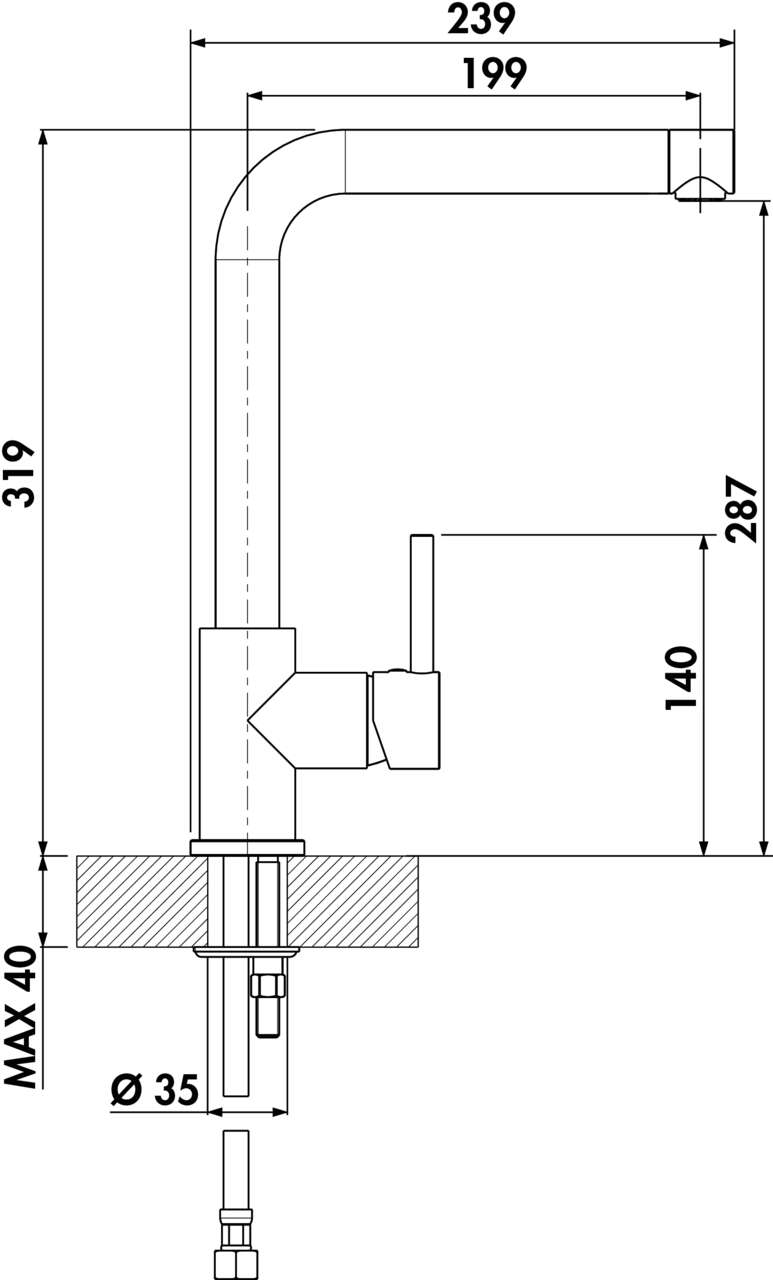 • Arbeitsplattenstärke: 40 mm